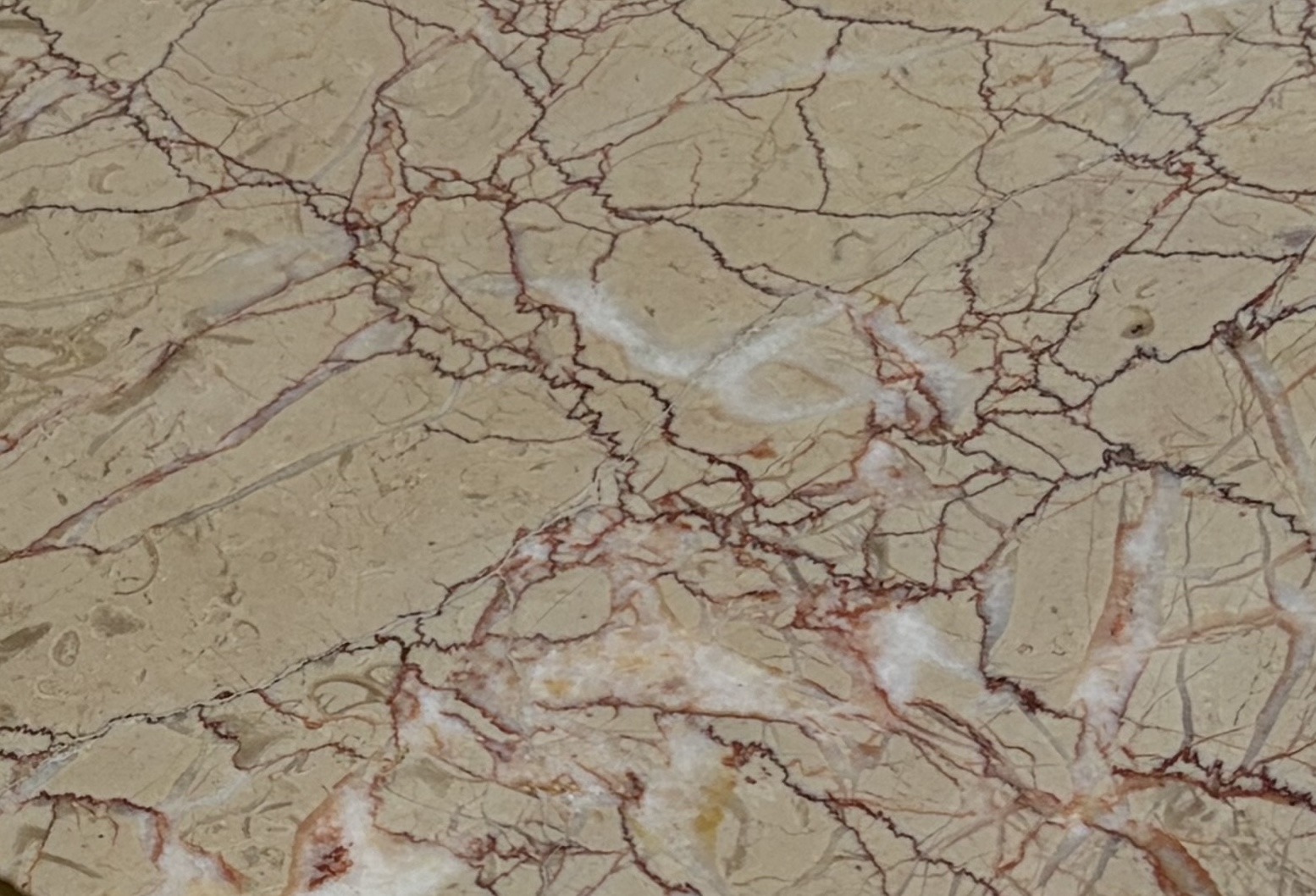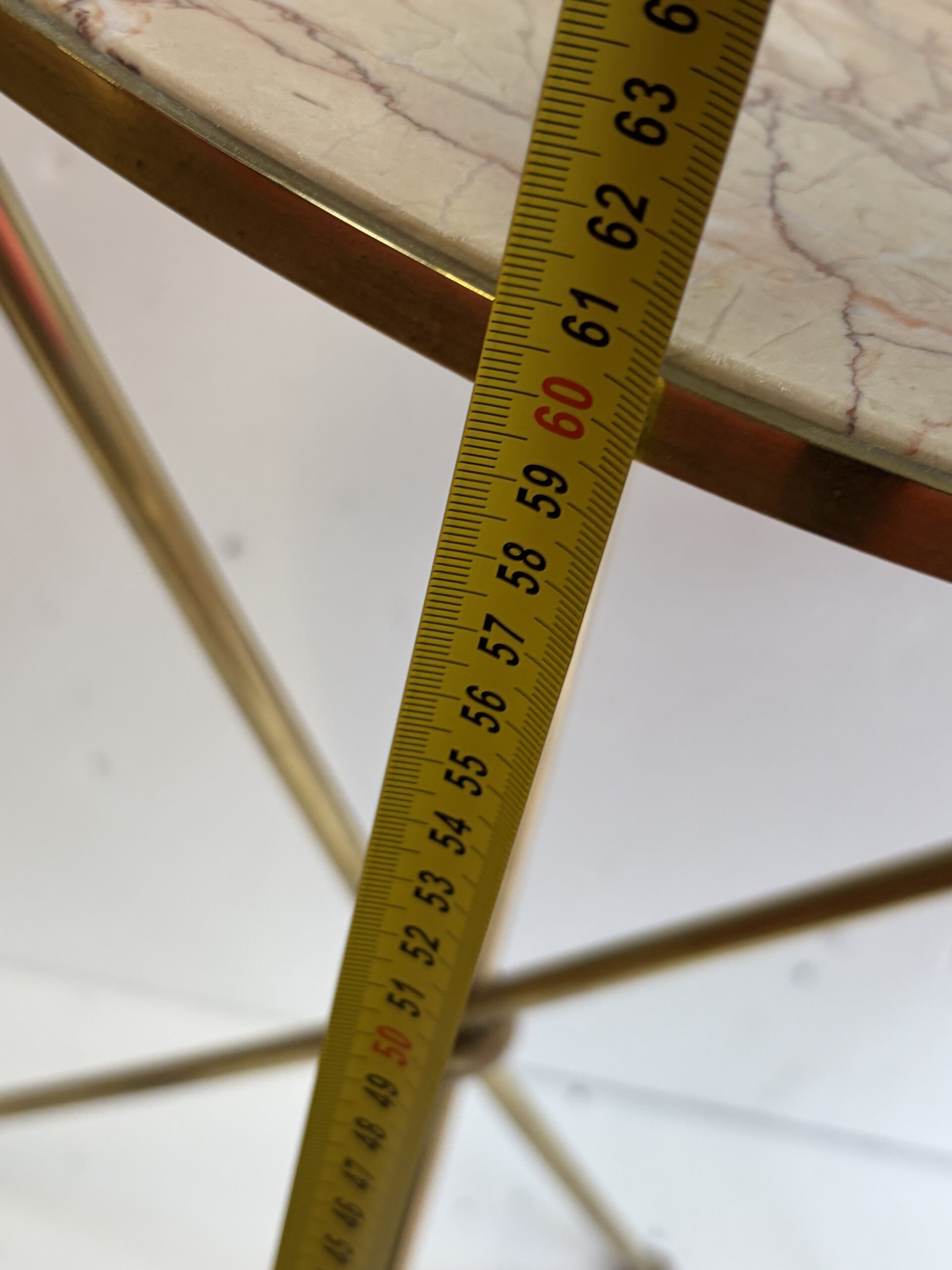 1940s–1950s Pair of Gilded Brass Side Tables in the Jacques Adnet Style, Ø 41.5 cm, H 61 cm, Calacatta Pink Marble