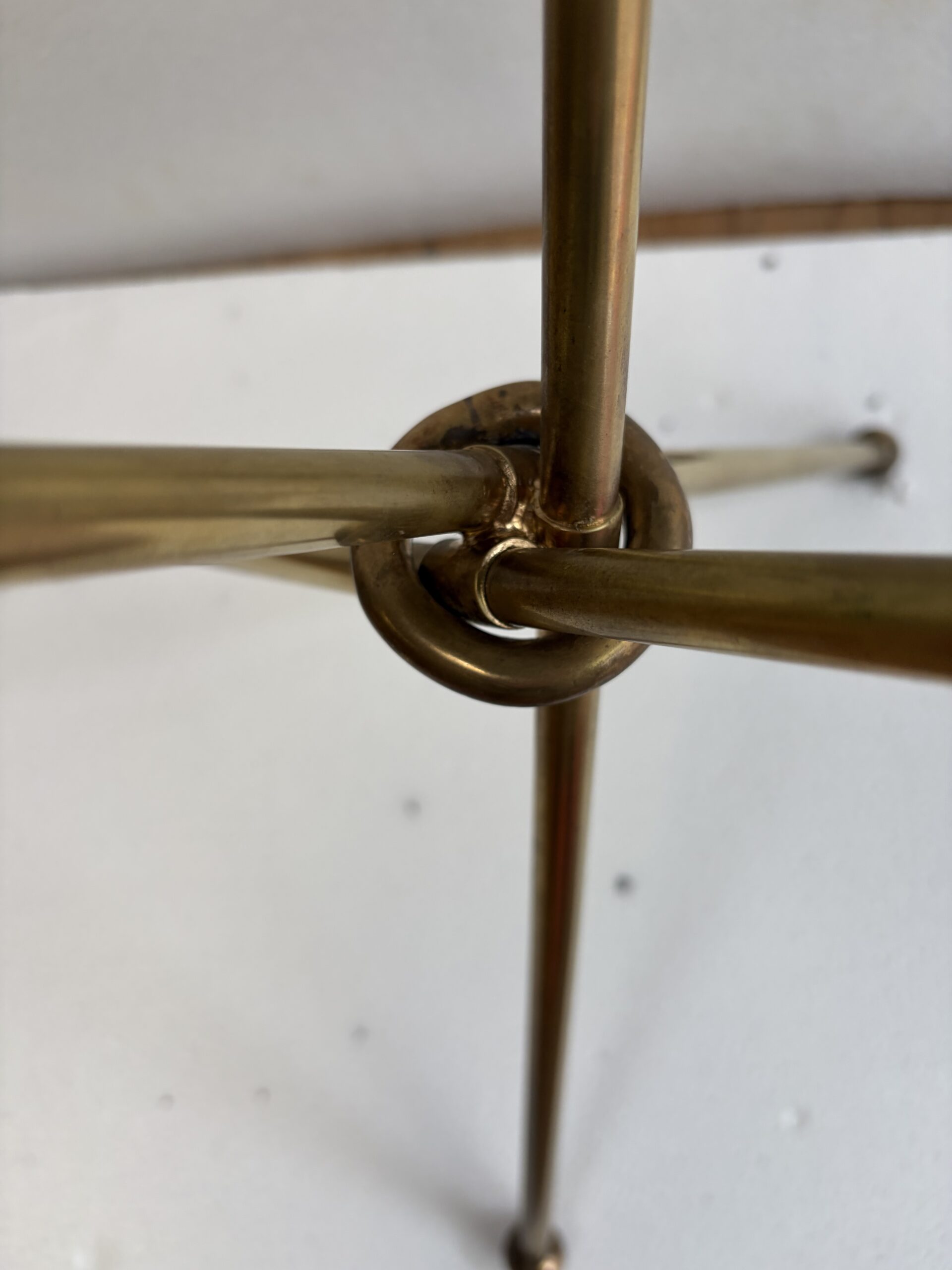 The three legs are joined by a ring.