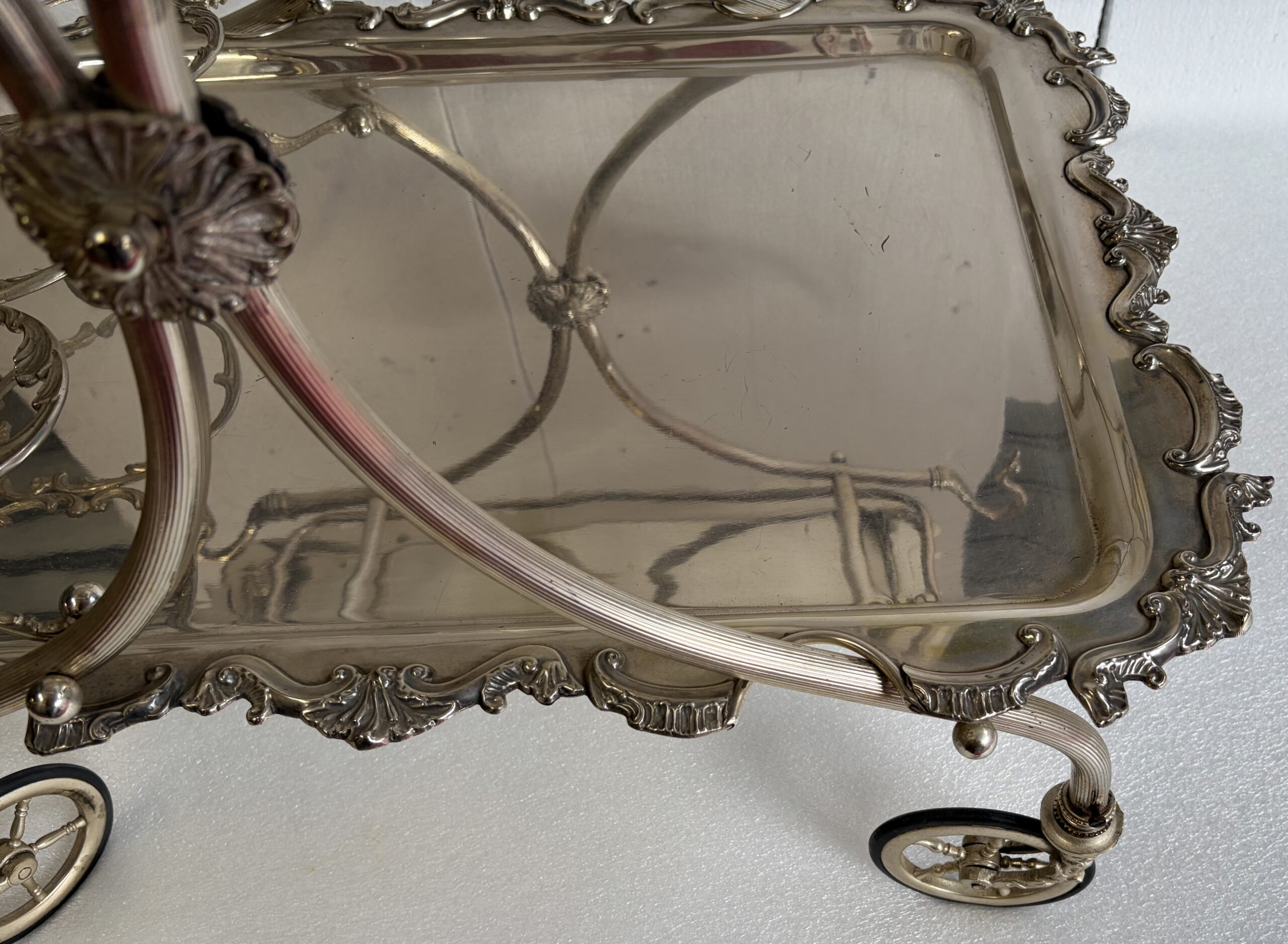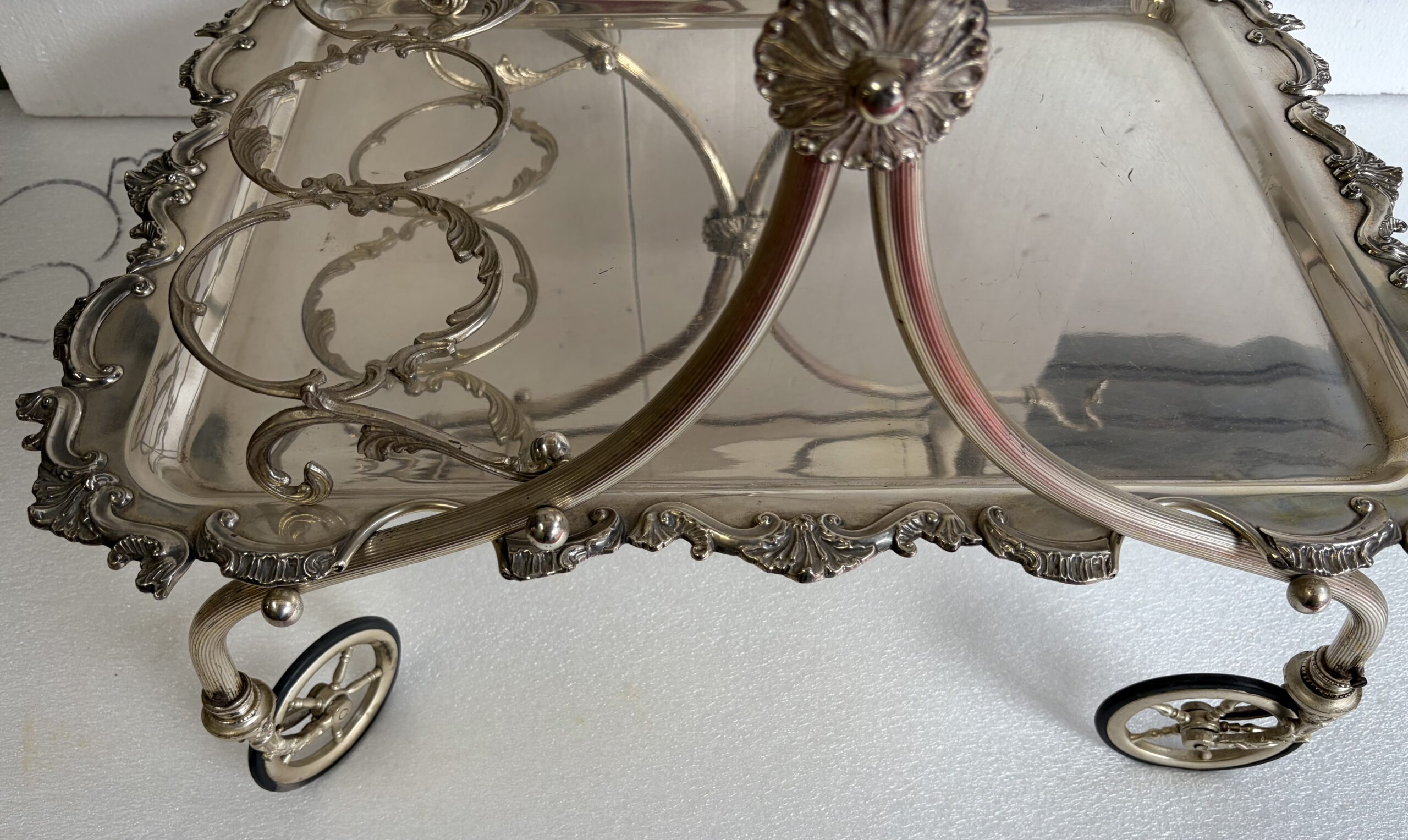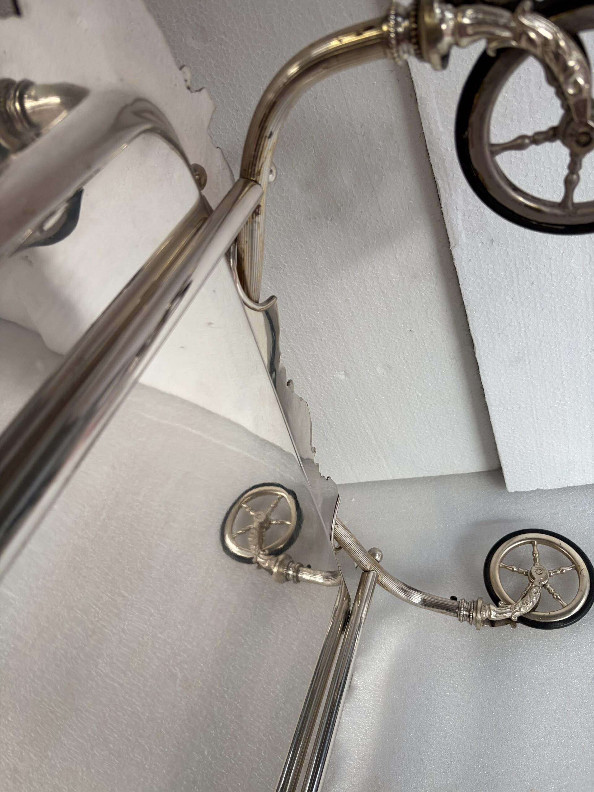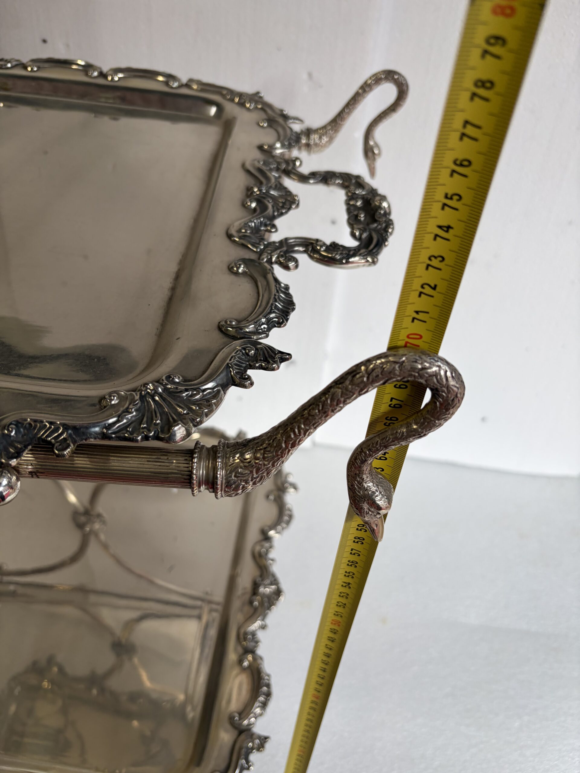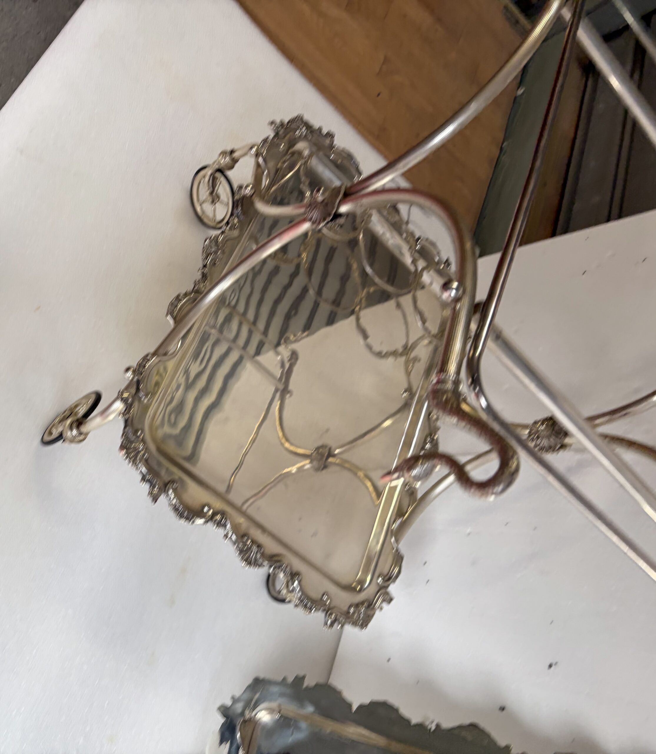 Silver-plated metal trolley with removable tray, With Swan Neck decor, everything can be taken apart.