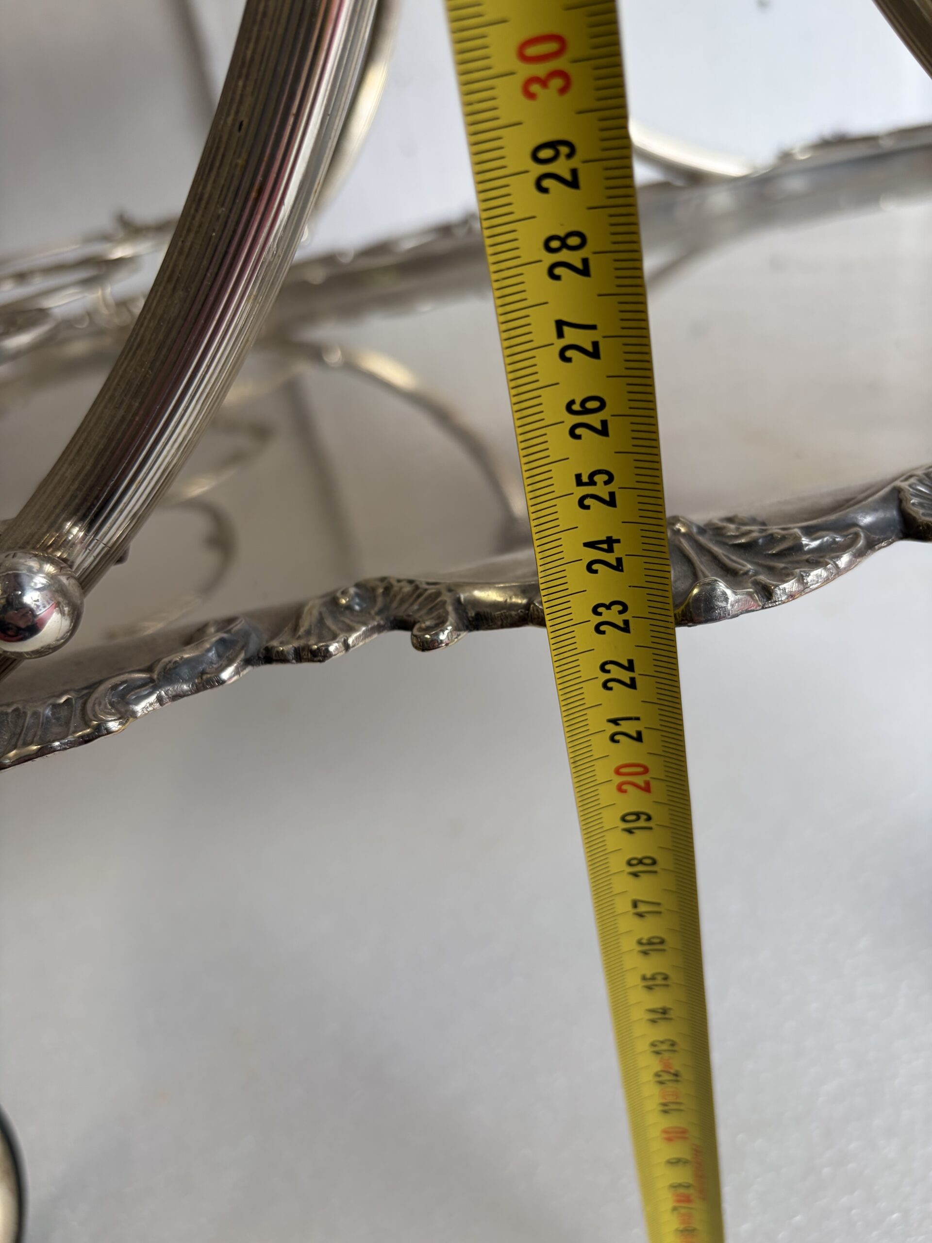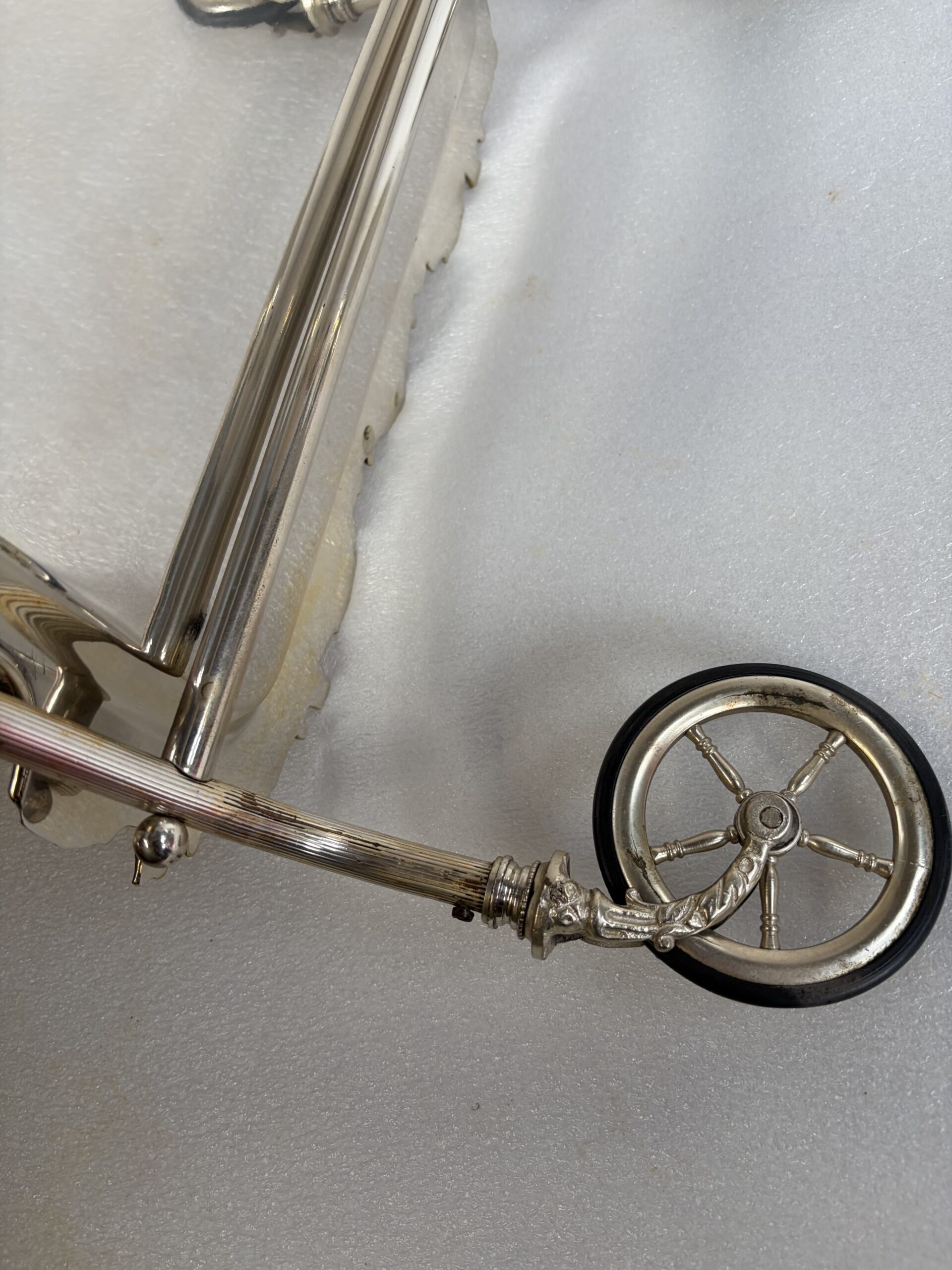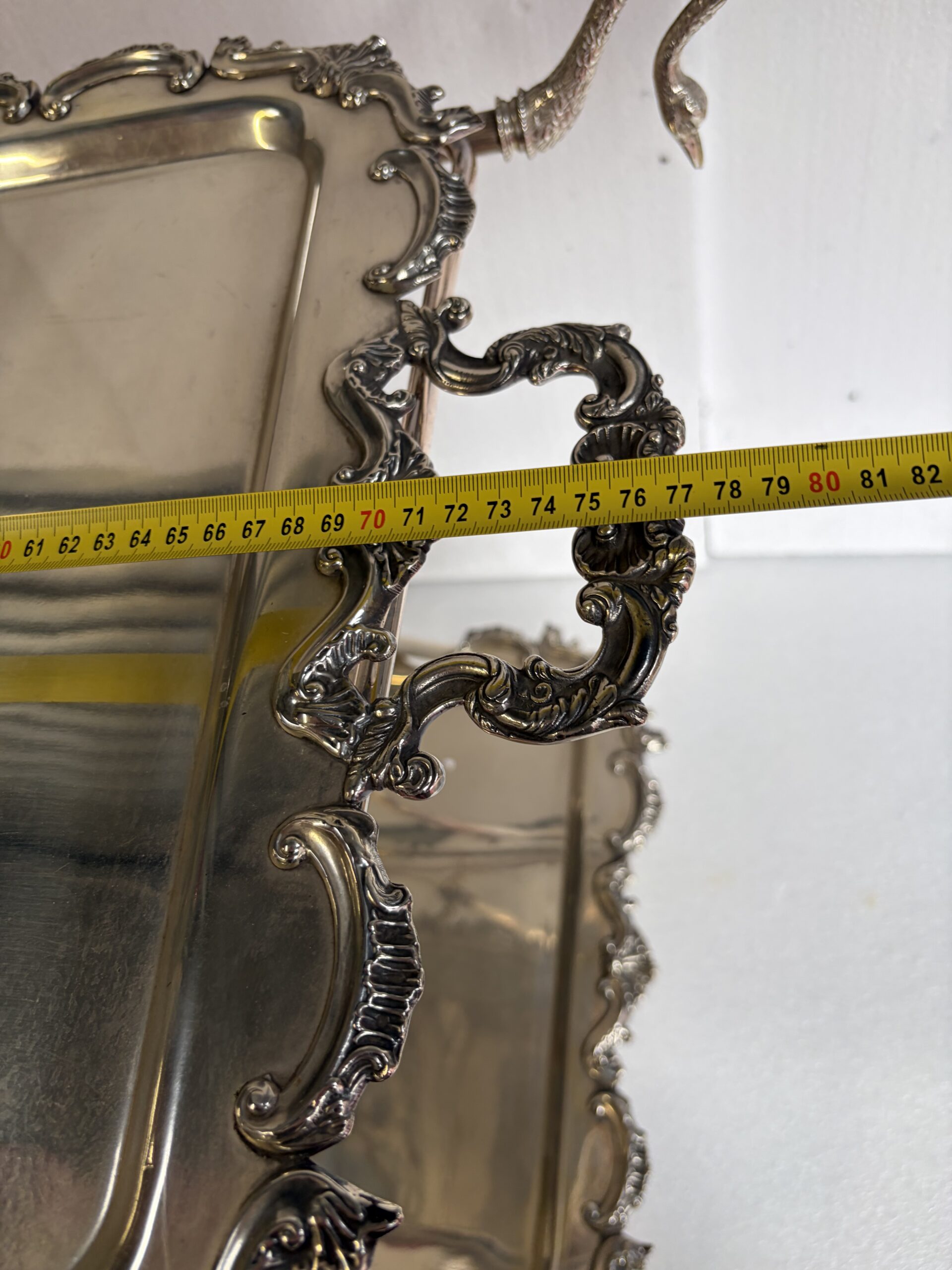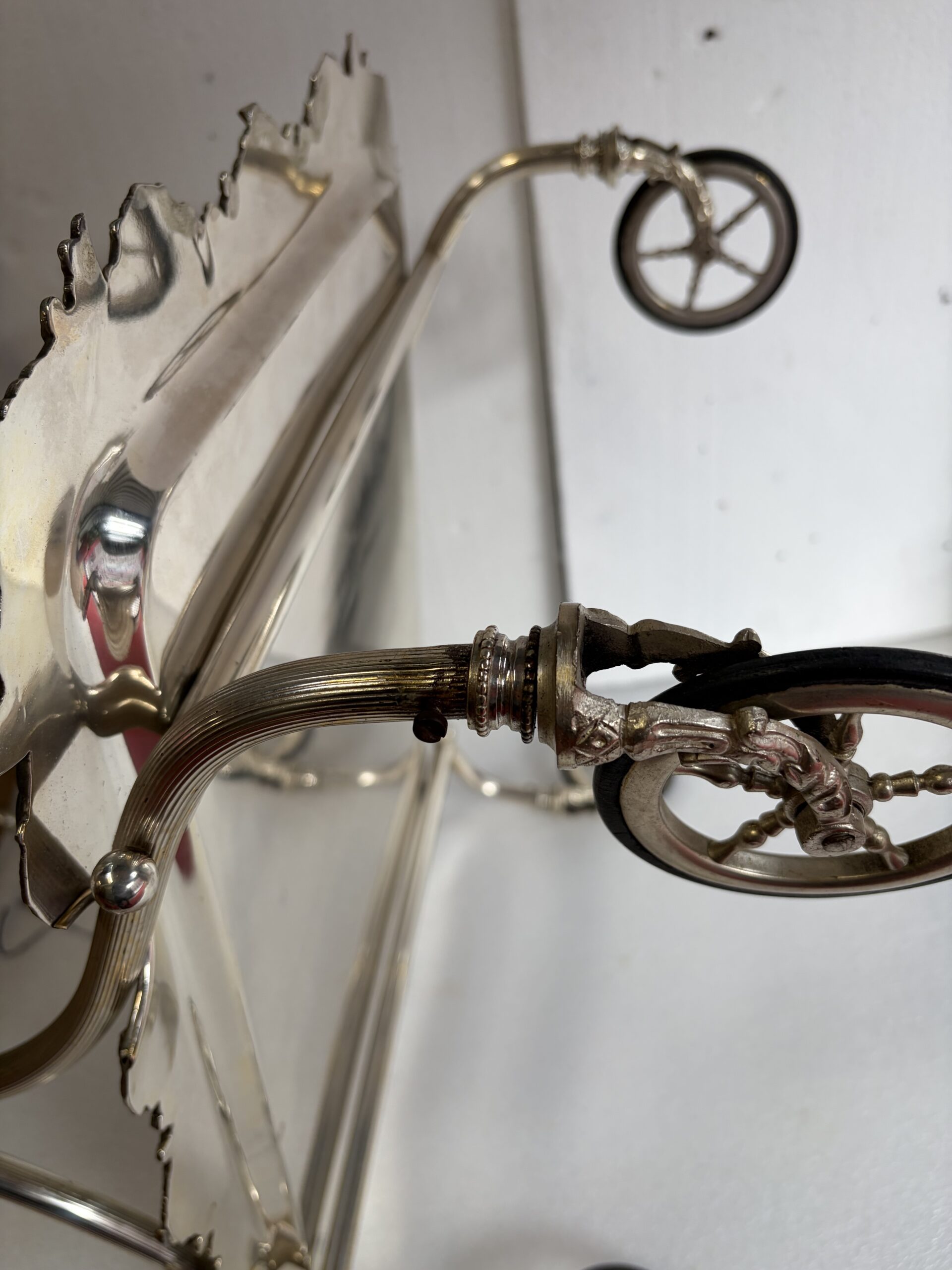 Silver-plated metal trolley with removable tray, With Swan Neck decor, everything can be taken apart.