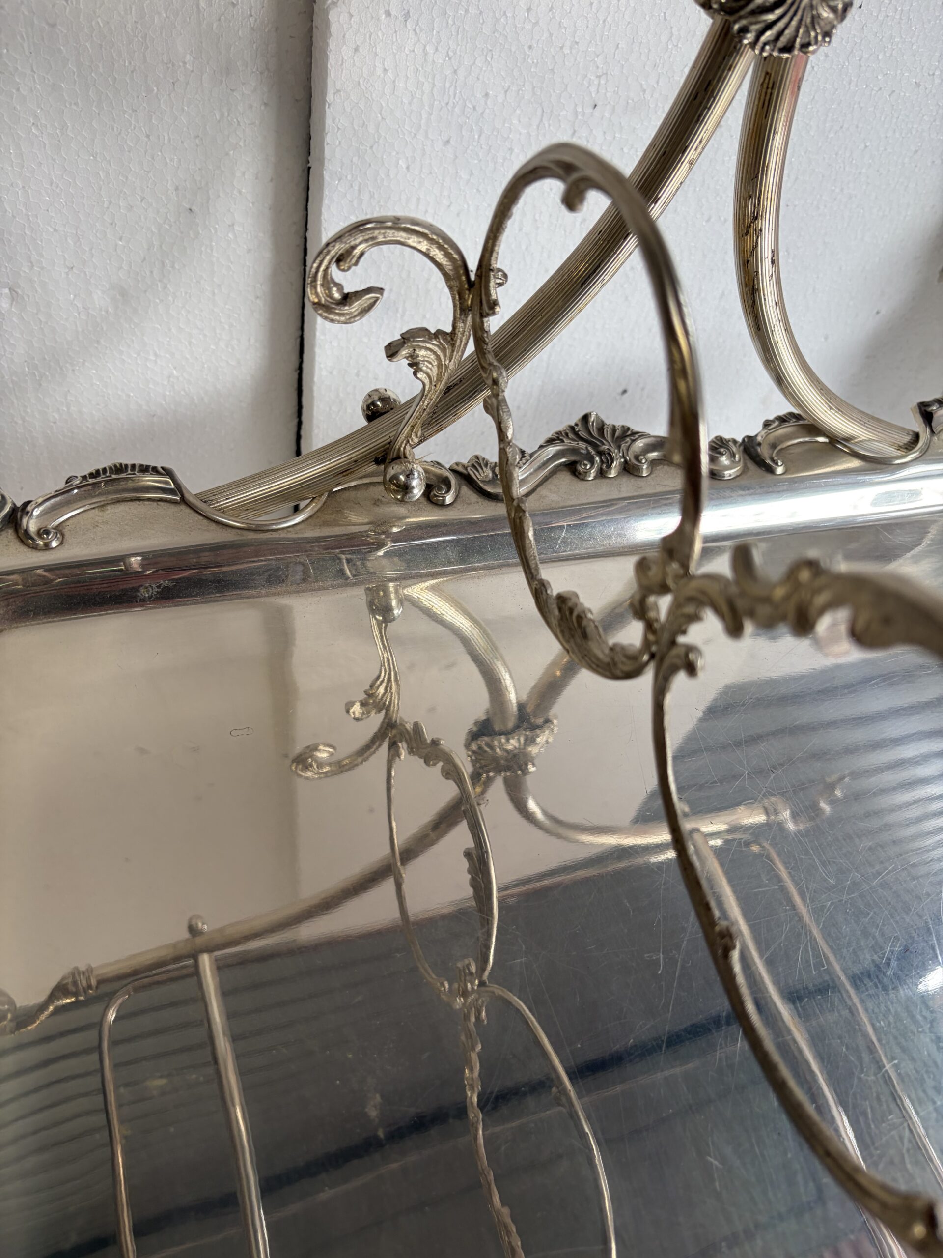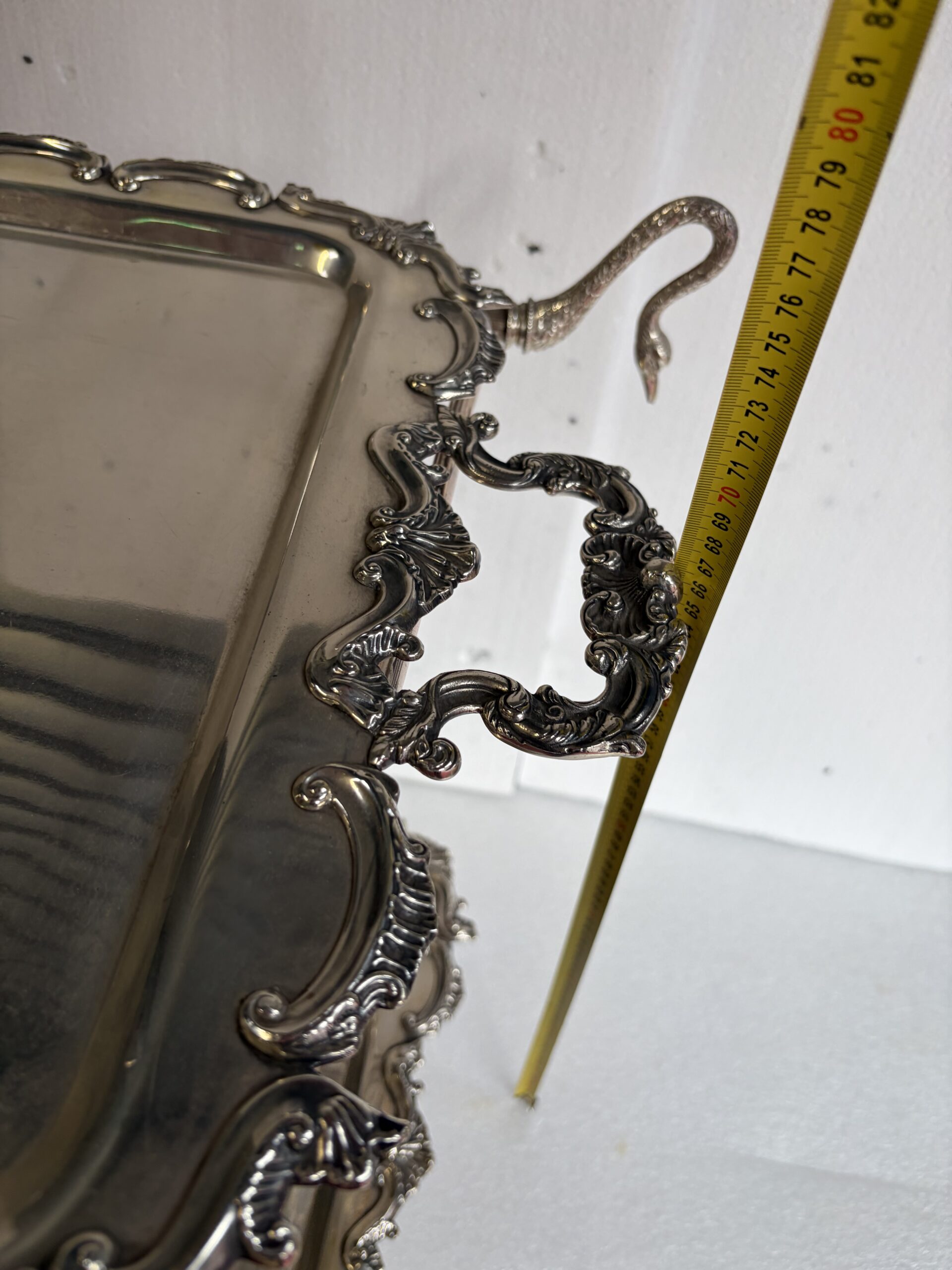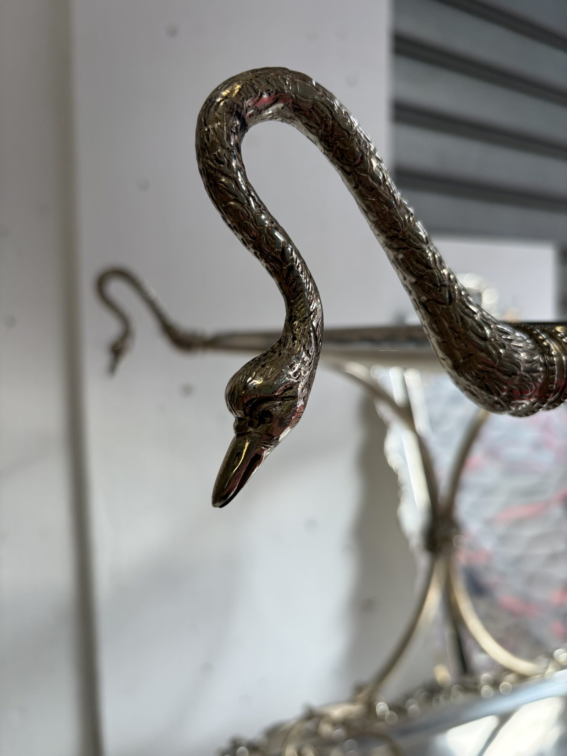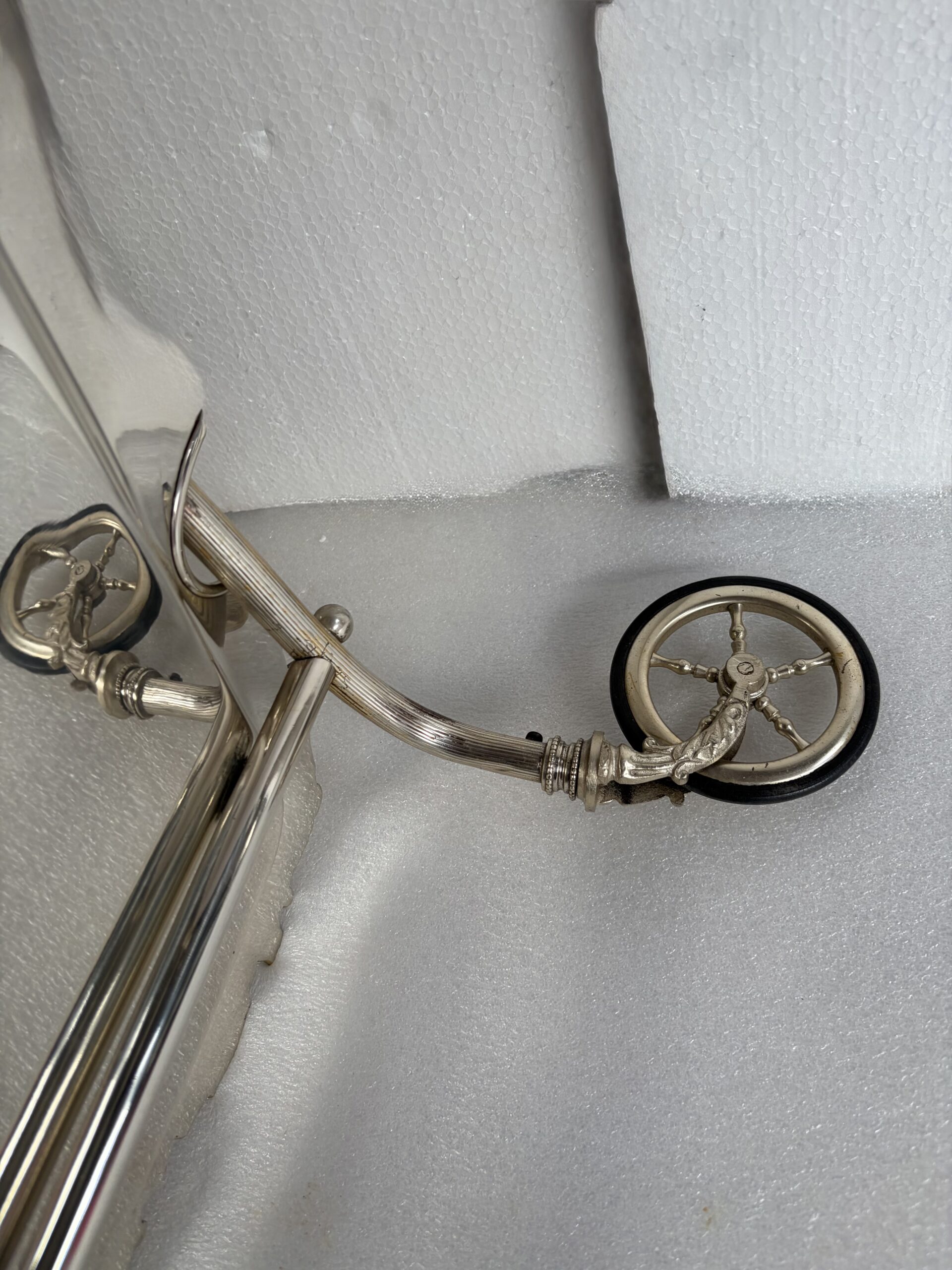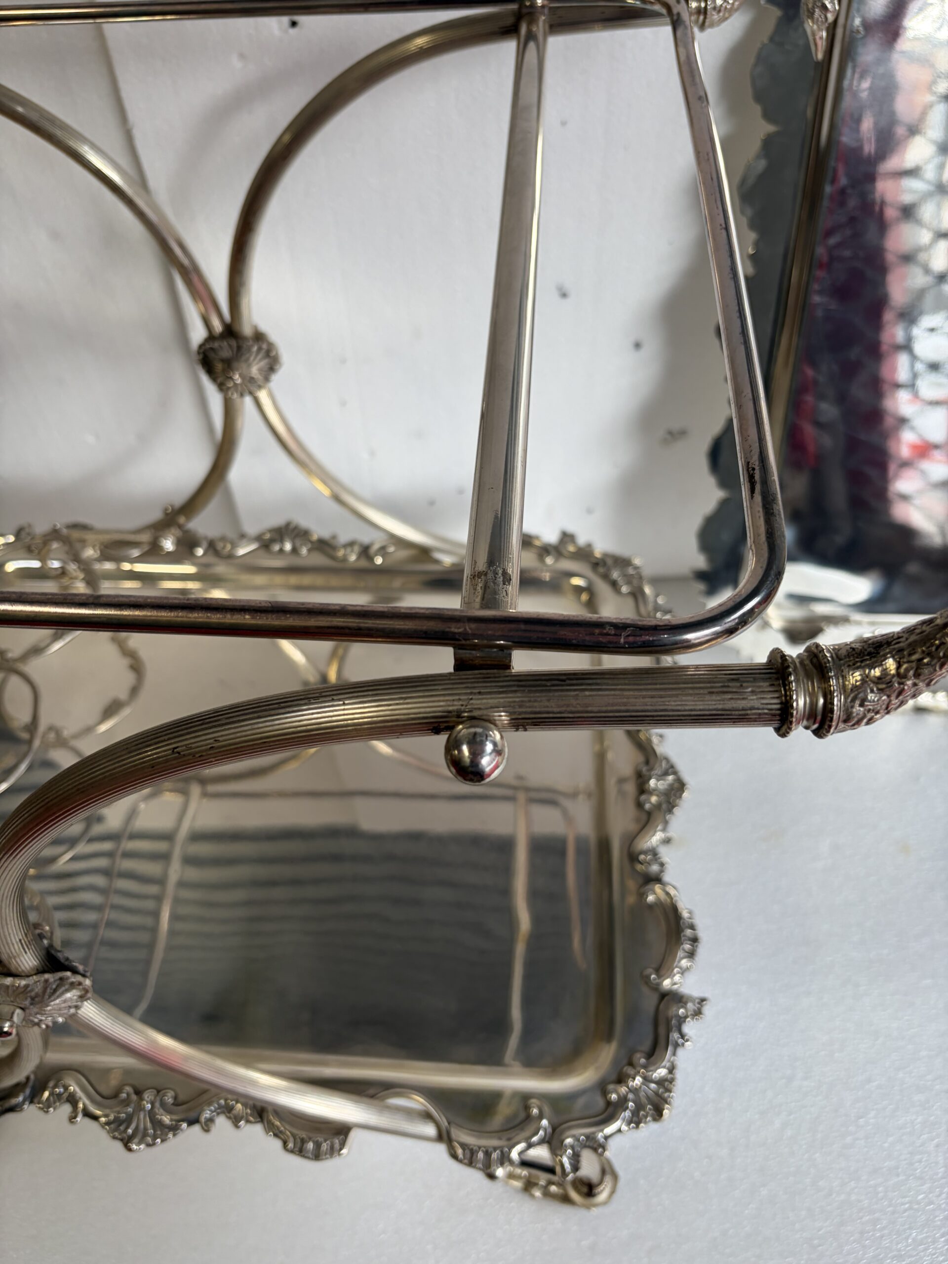 Silver-plated metal trolley with removable tray, With Swan Neck decor, everything can be taken apart.