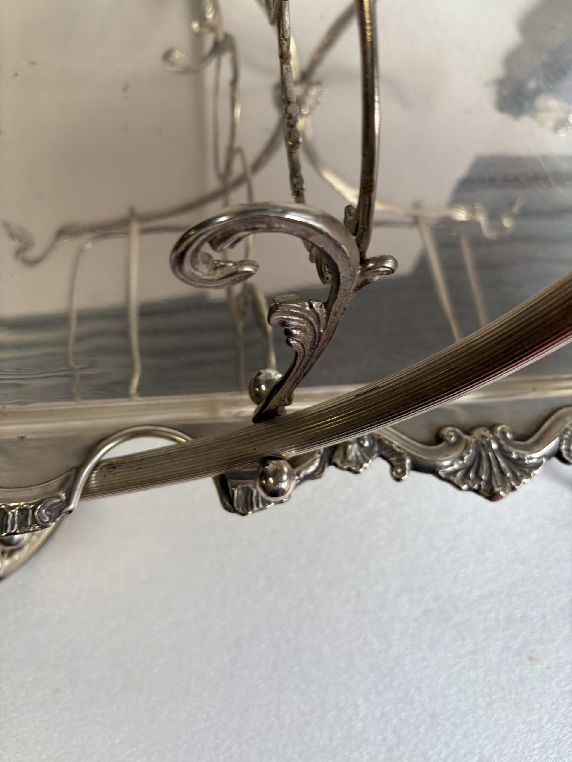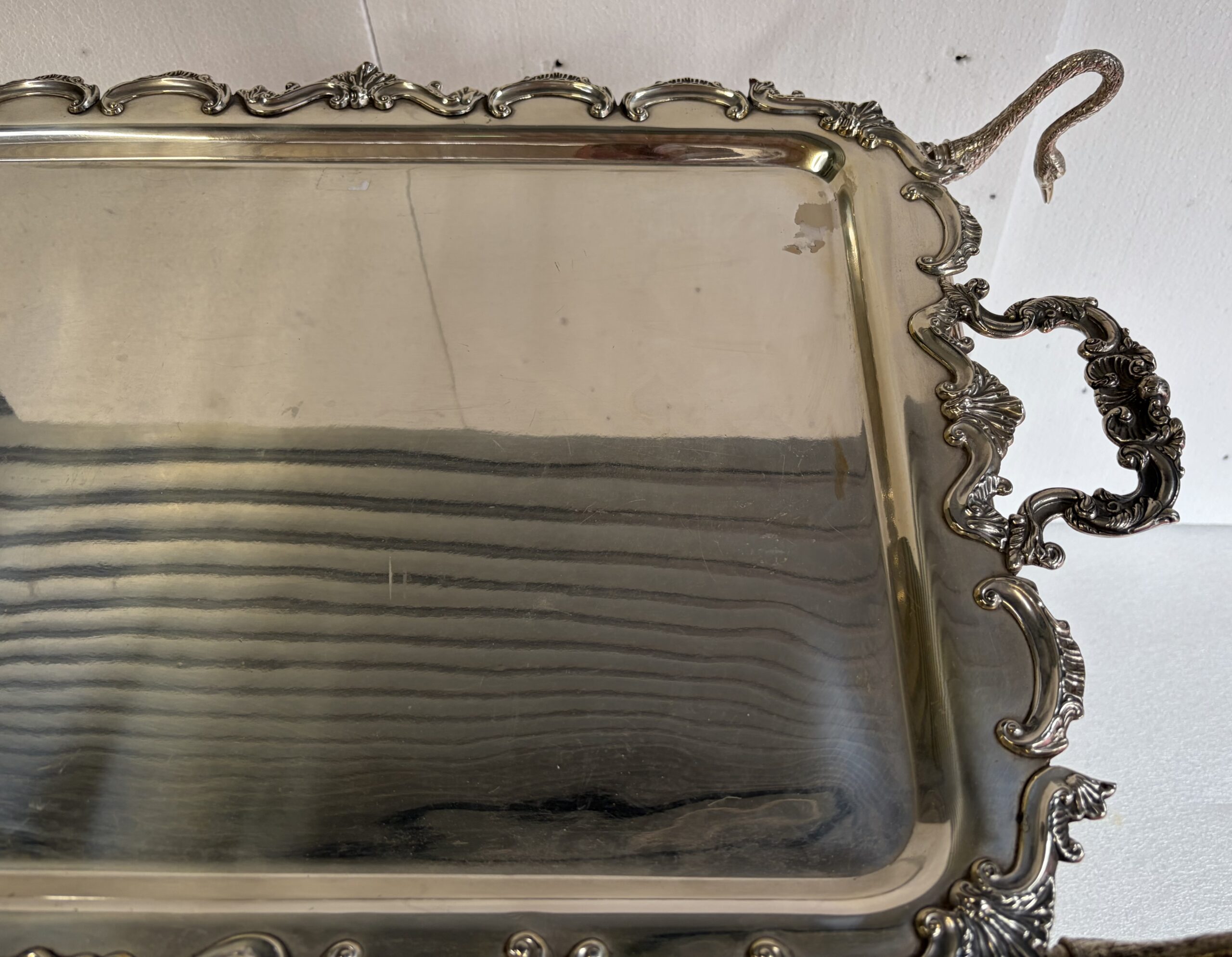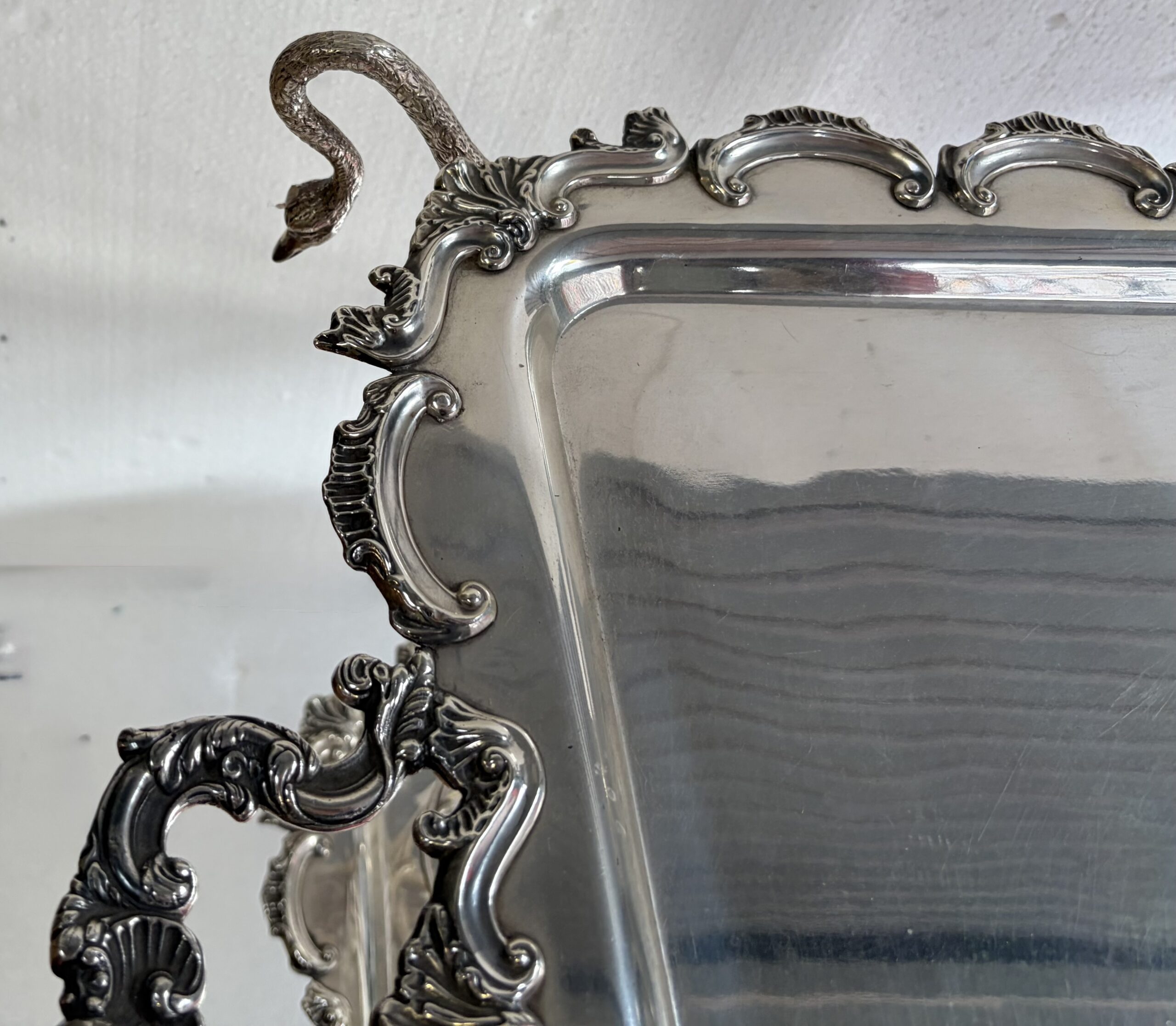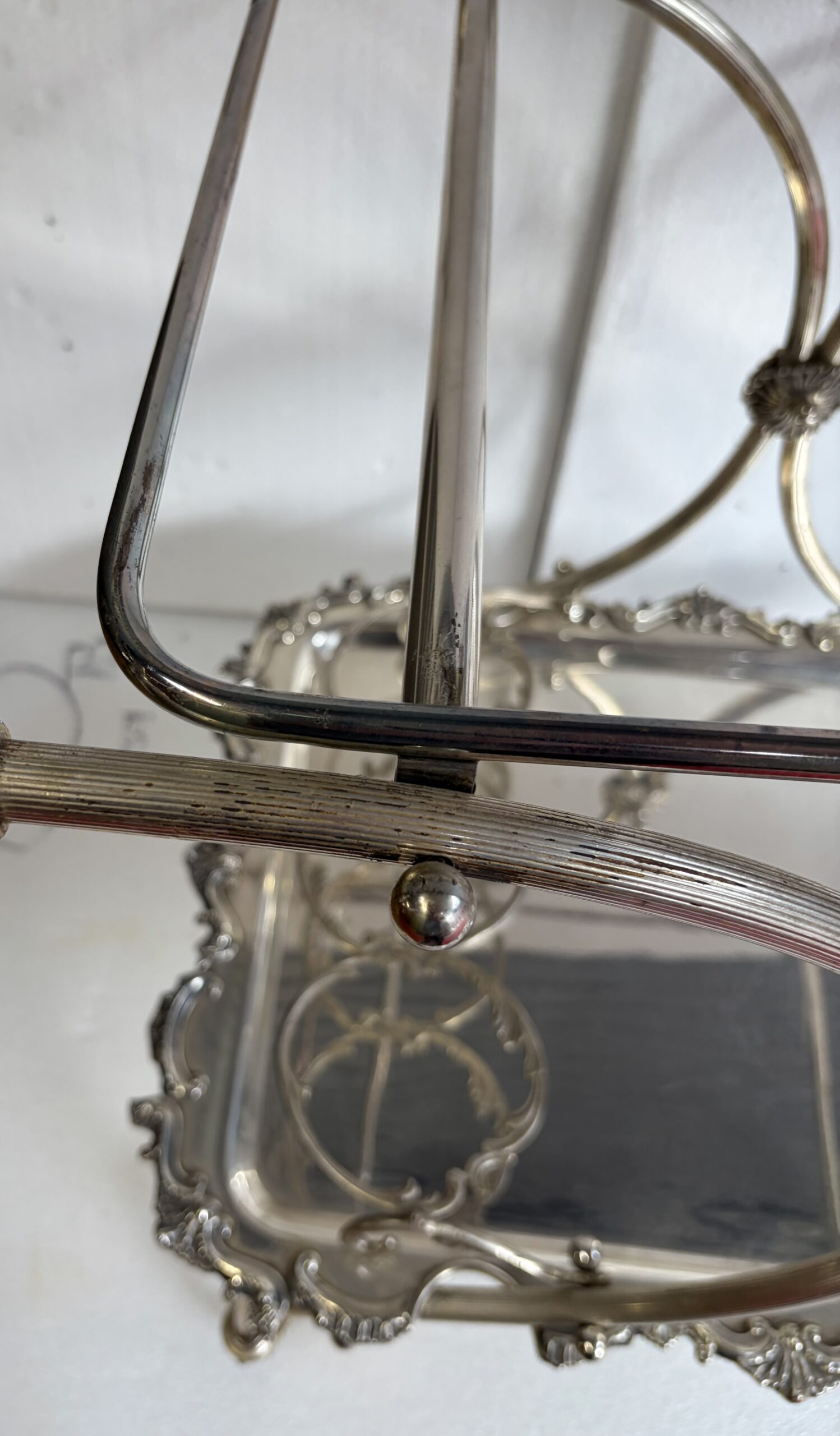 Silver-plated metal trolley with removable tray, With Swan Neck decor, everything can be taken apart.