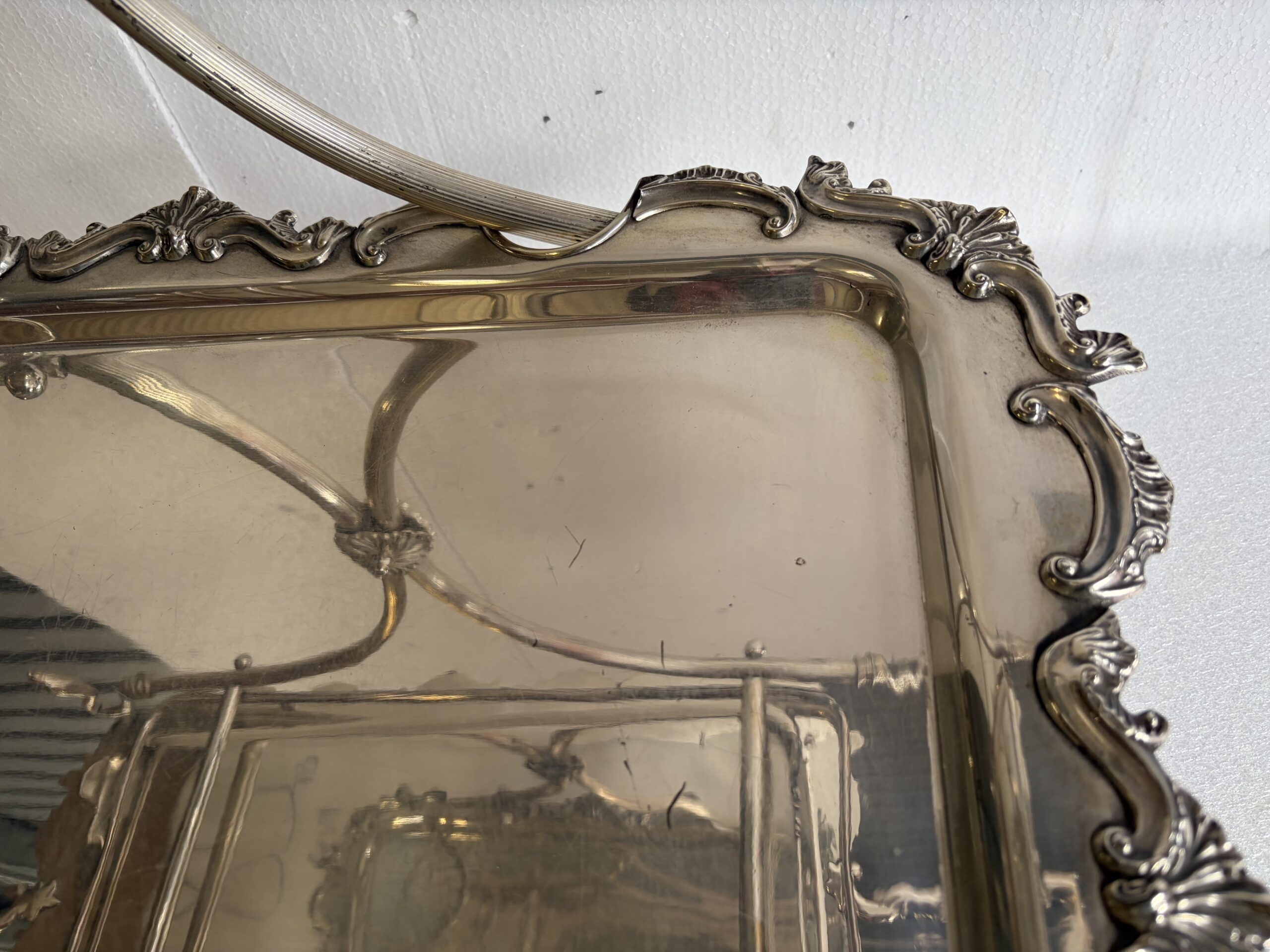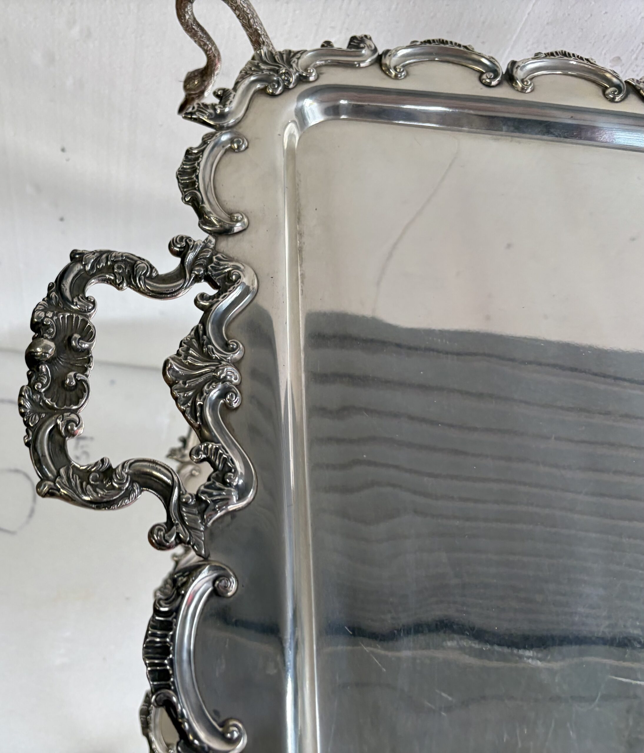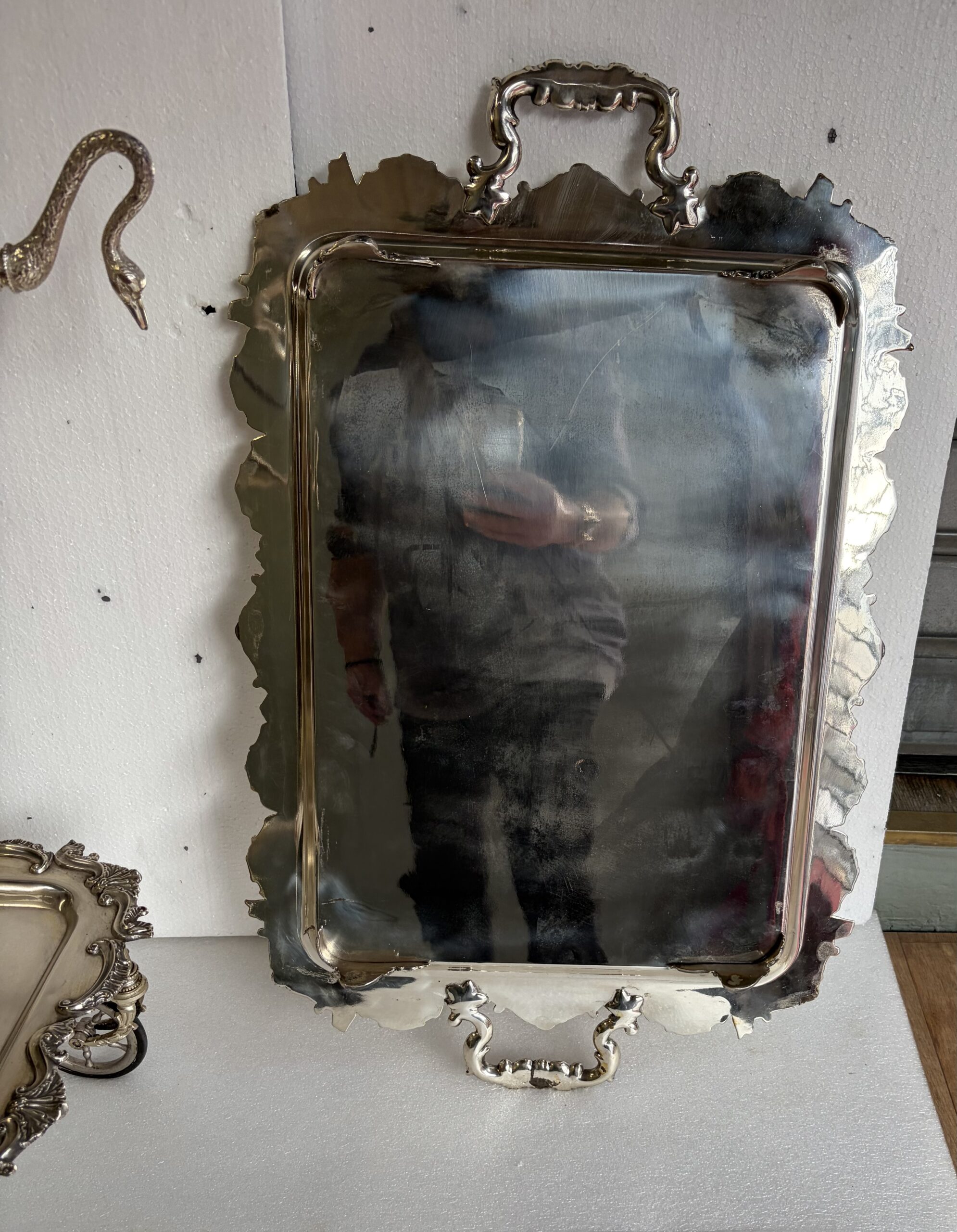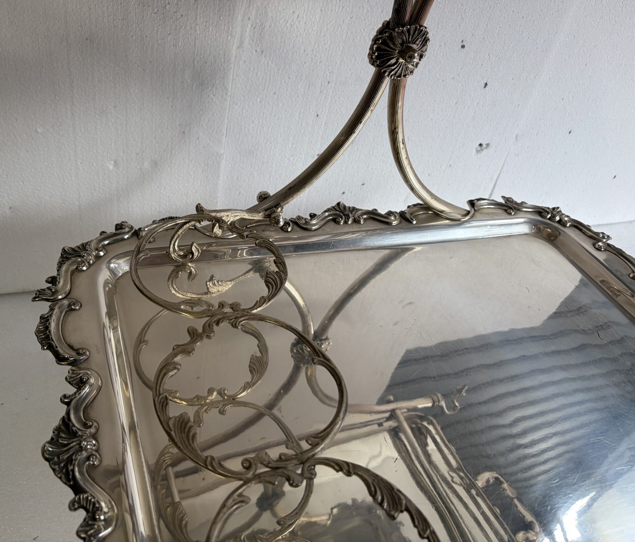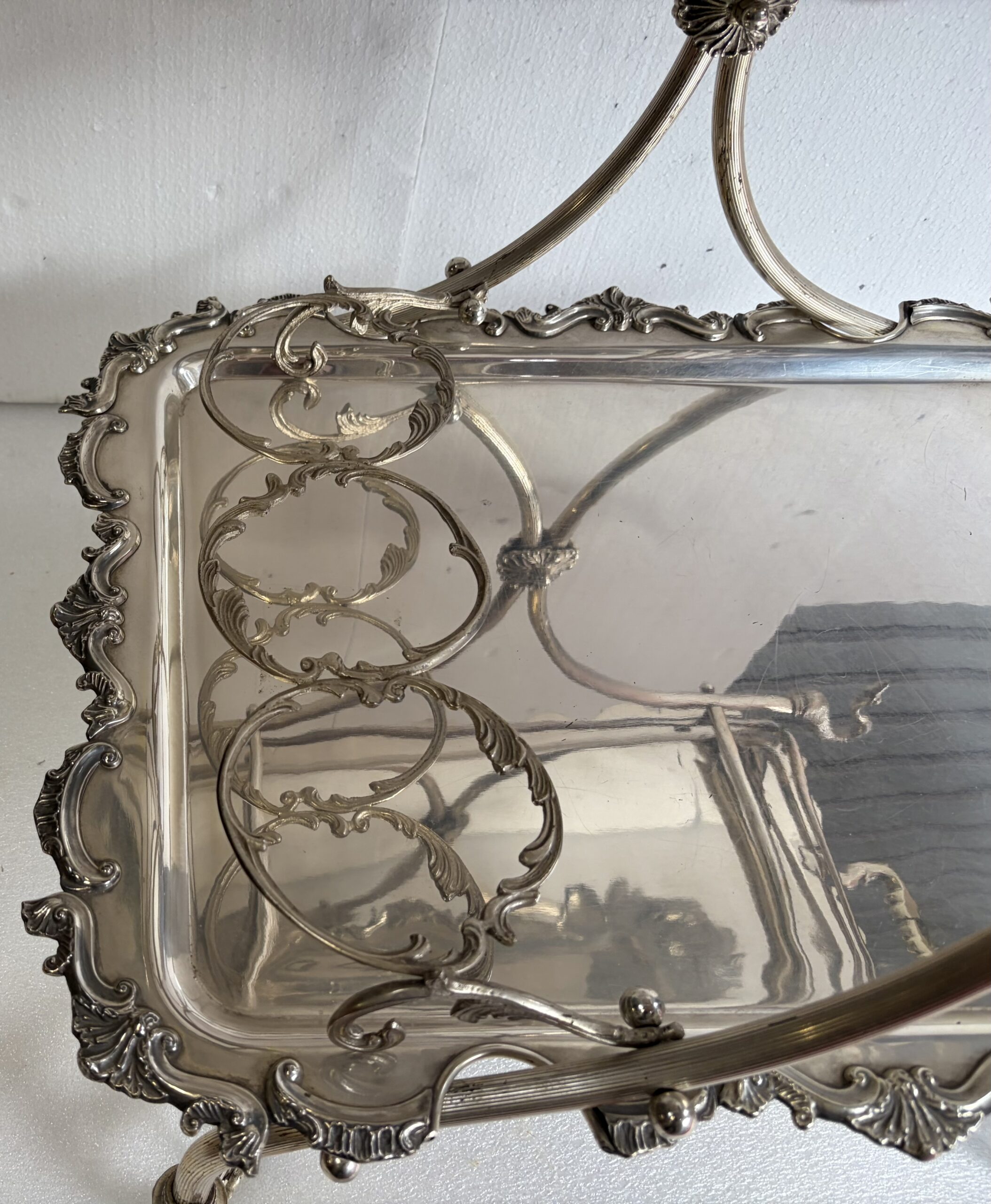 Silver-plated metal trolley with removable tray, With Swan Neck decor, everything can be taken apart.
