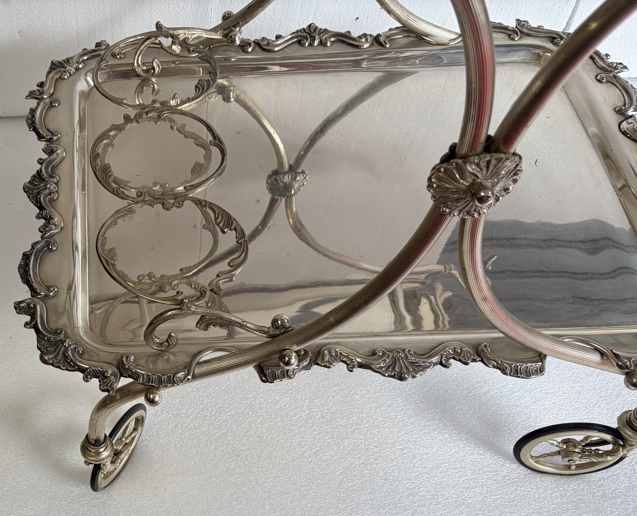 1950/70 Rolling Bar With Swan Decor Rocaille Style Silver Metal From Parisian Palace