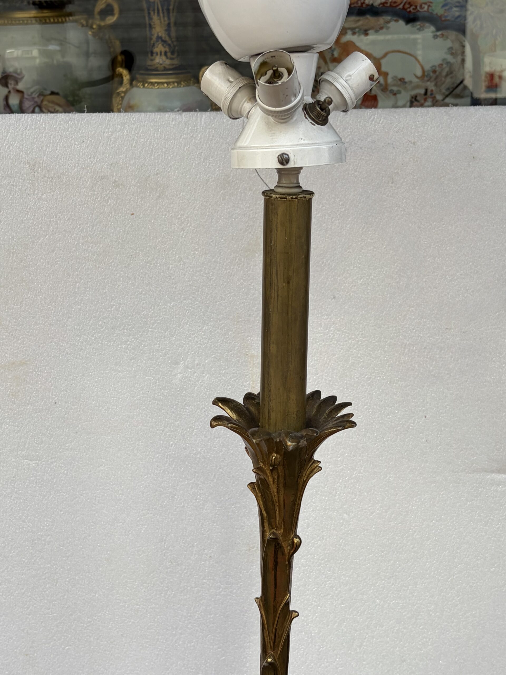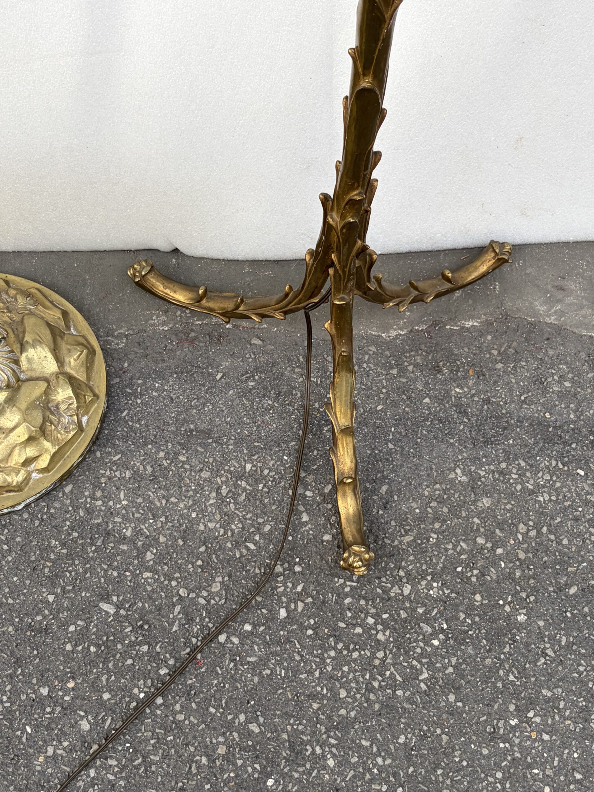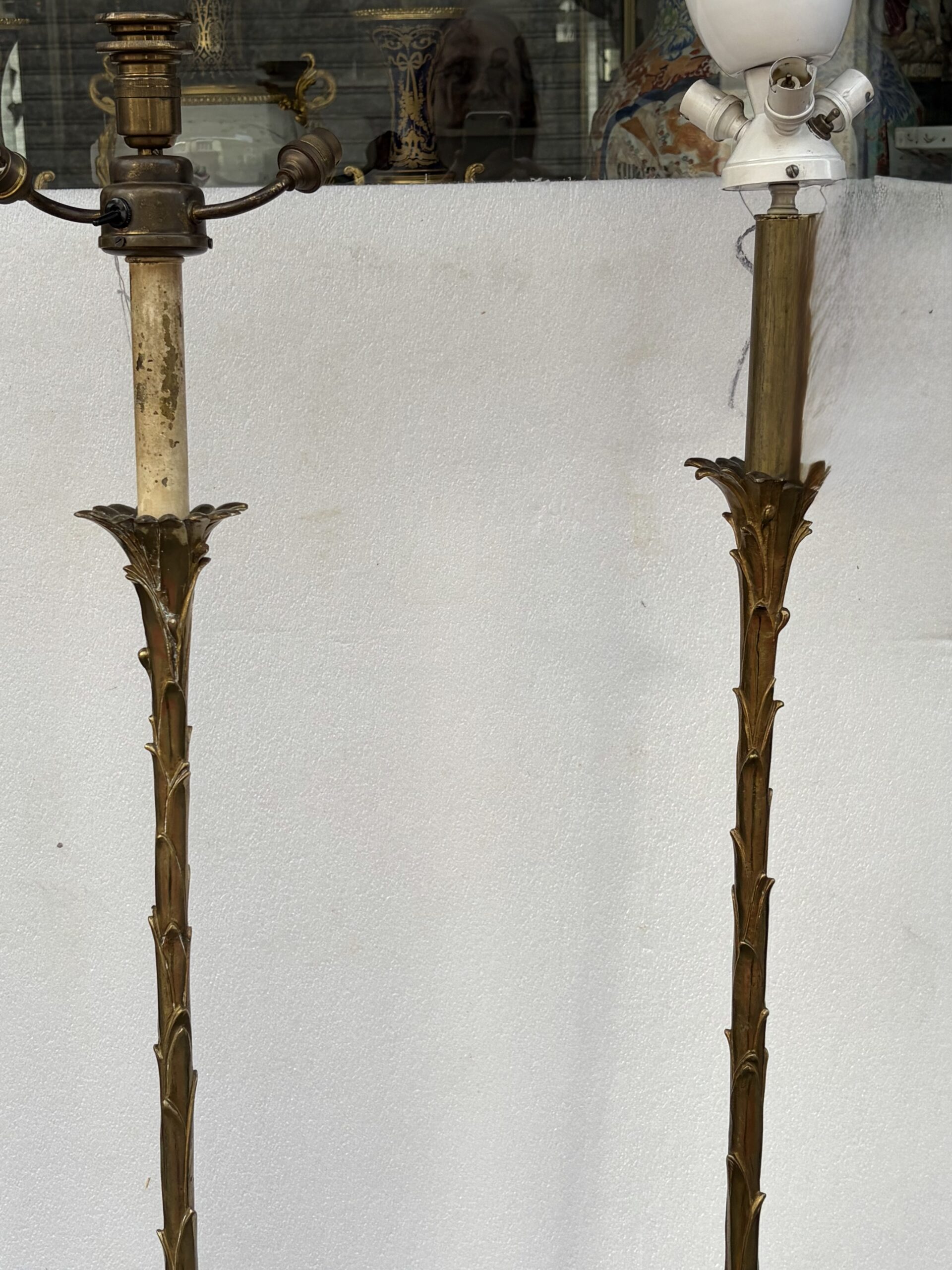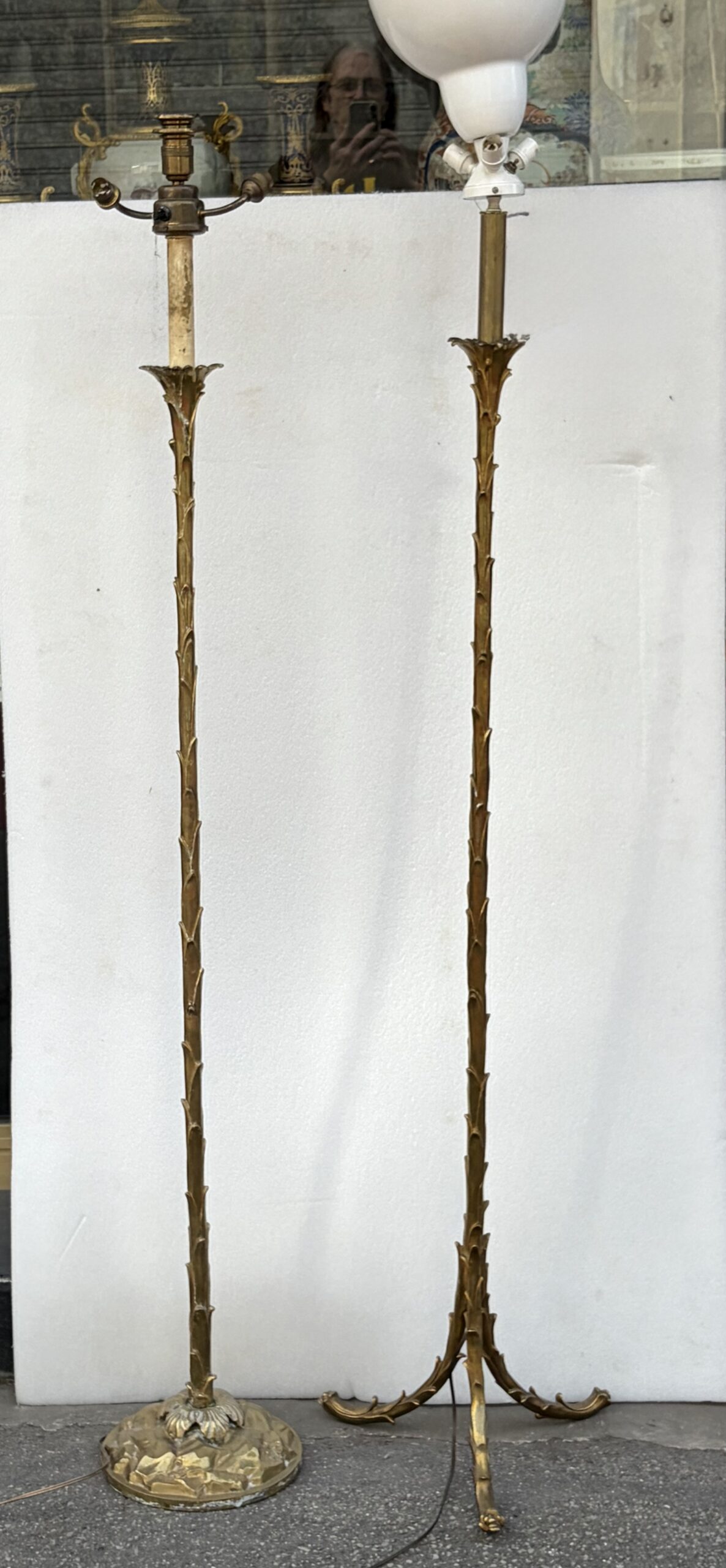 2 Floor lamps, “Maison Bagues” model, with a round base in gilded bronze, and the other with a tripod base