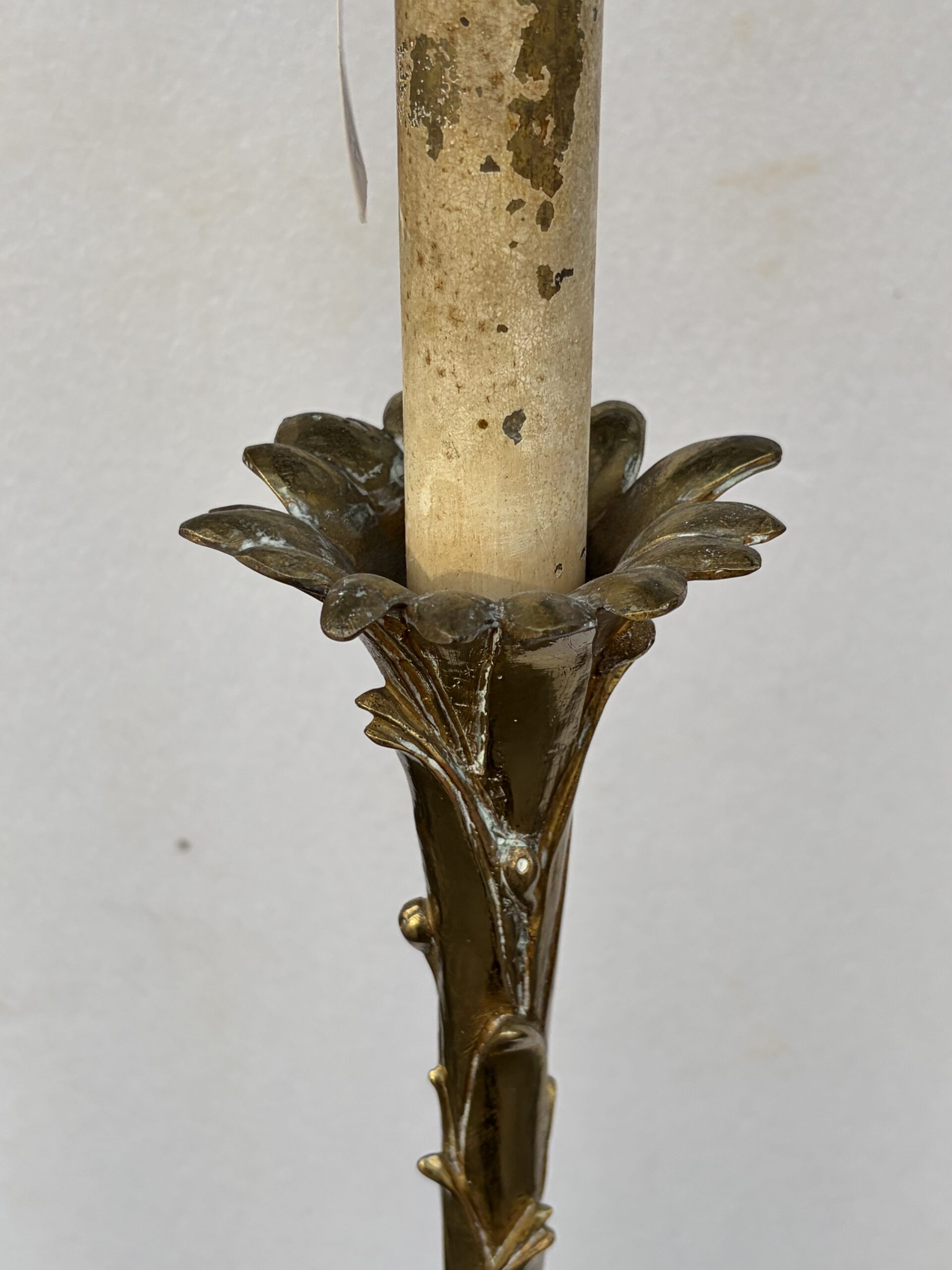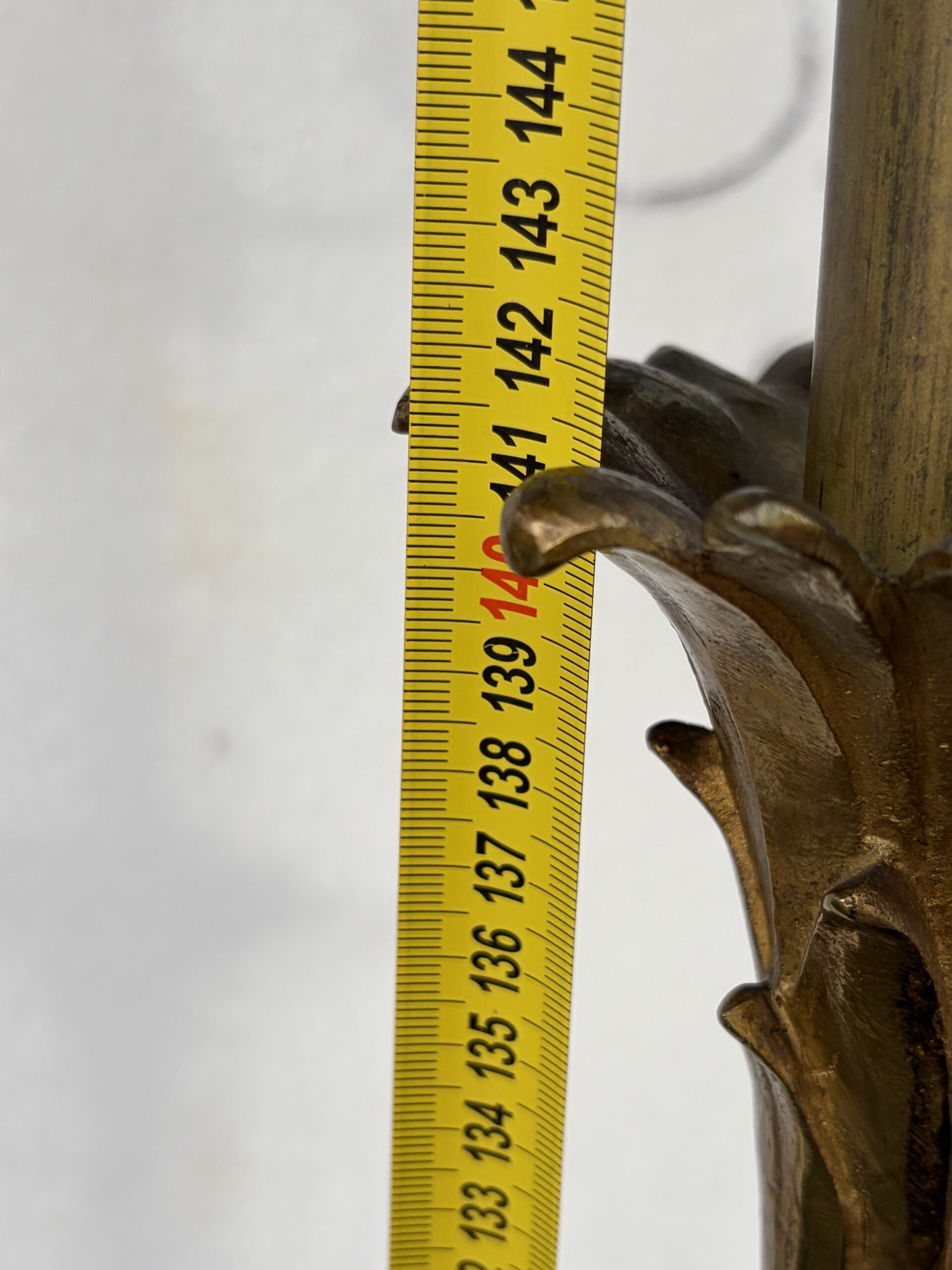 1970s 2 Bronze Floor Lamps with Palm Leaf Decorative Rings, Height 166 cm, Round Base and Tripod