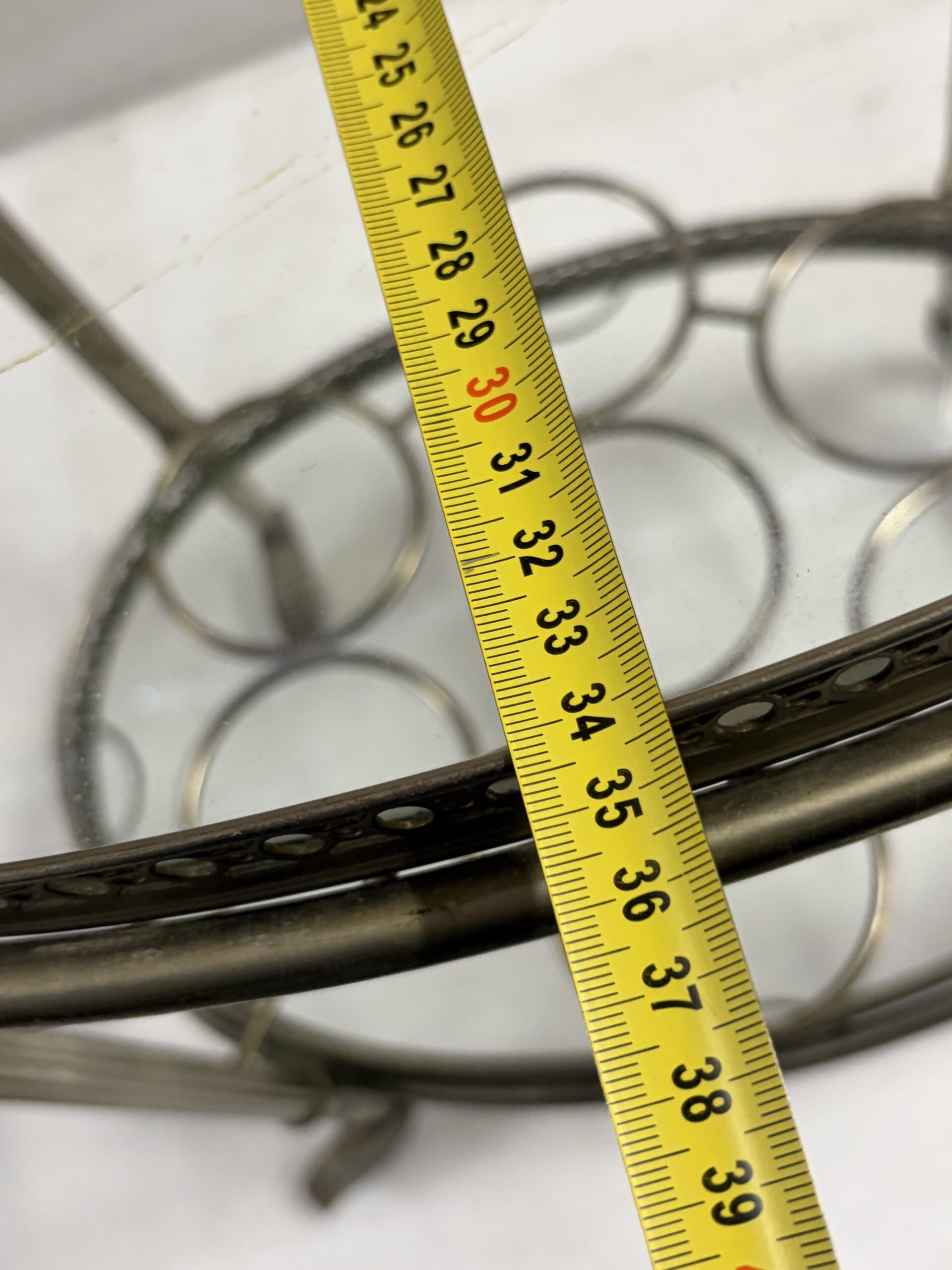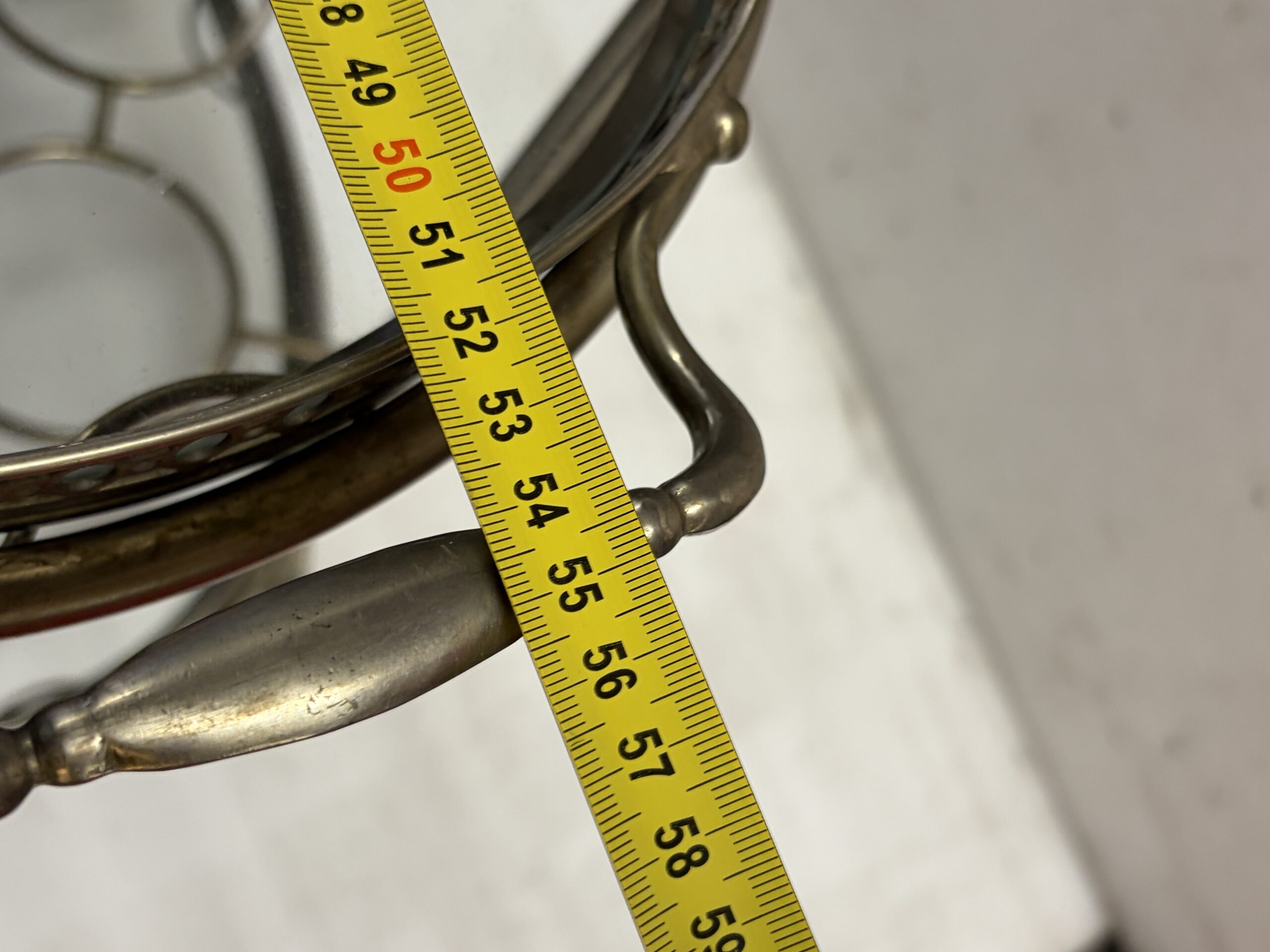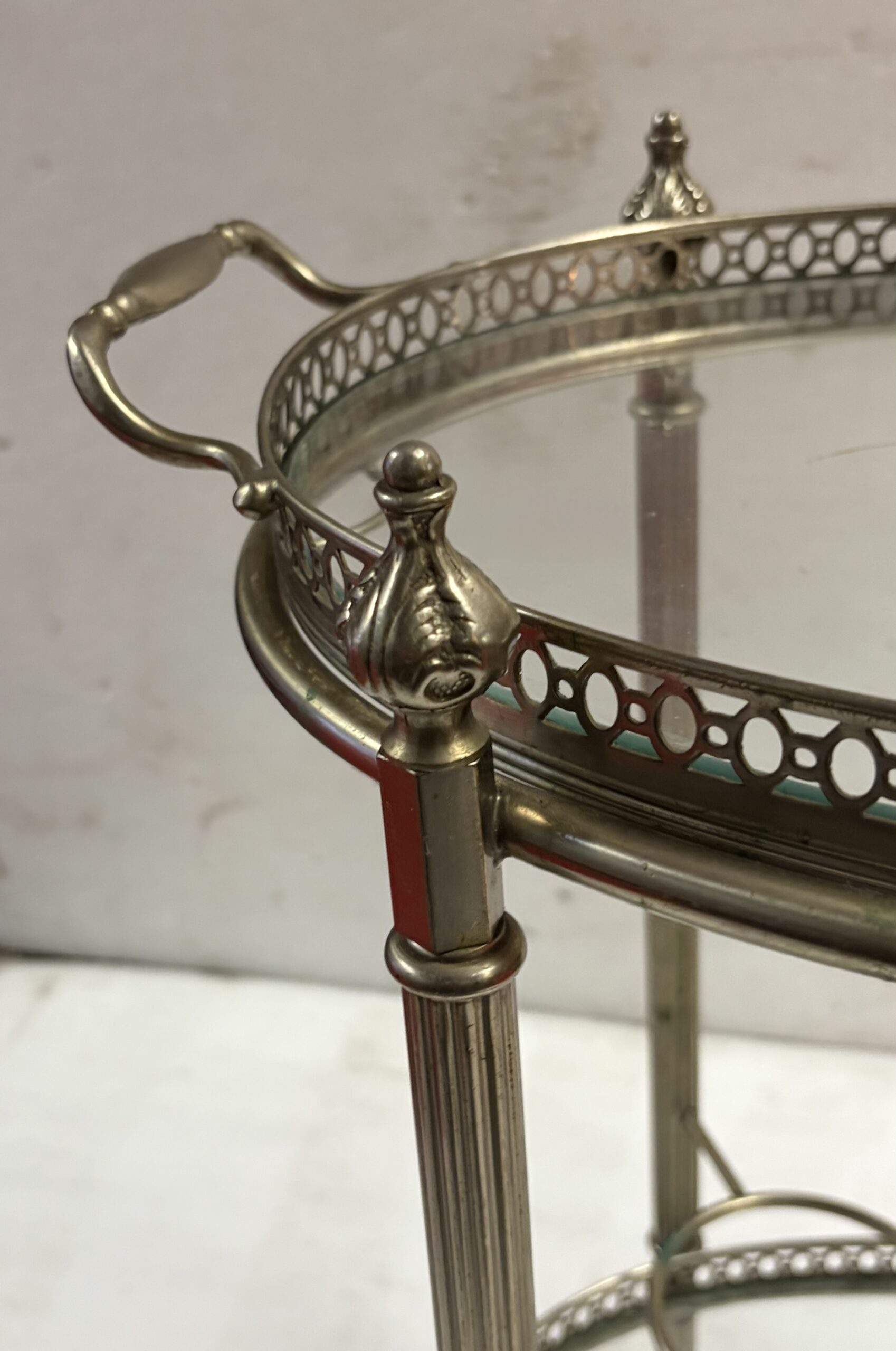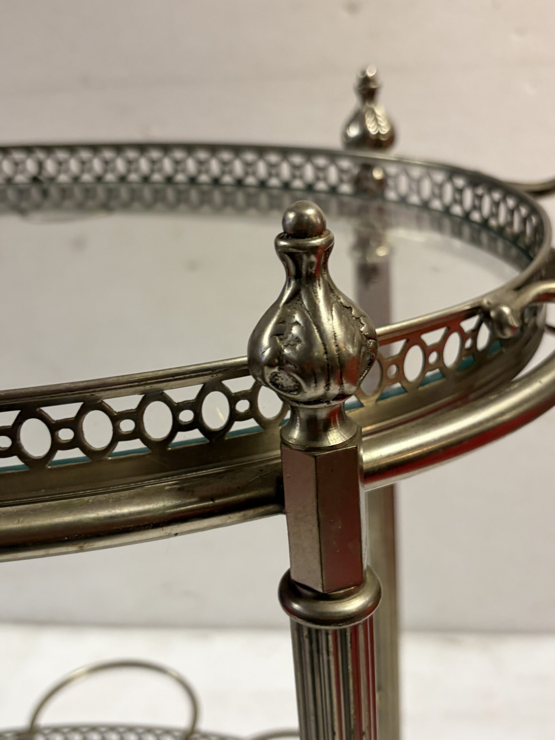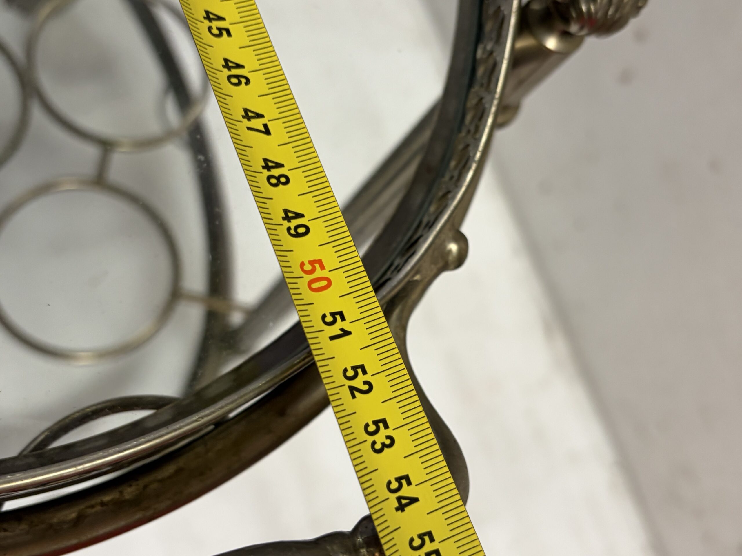 Rolling bar with 2 glass shelves, Bottle rack Circa 1970, used condition Length: 55 cm to the handles Width: 36 cm Height: 62 cm to the top of the uprights