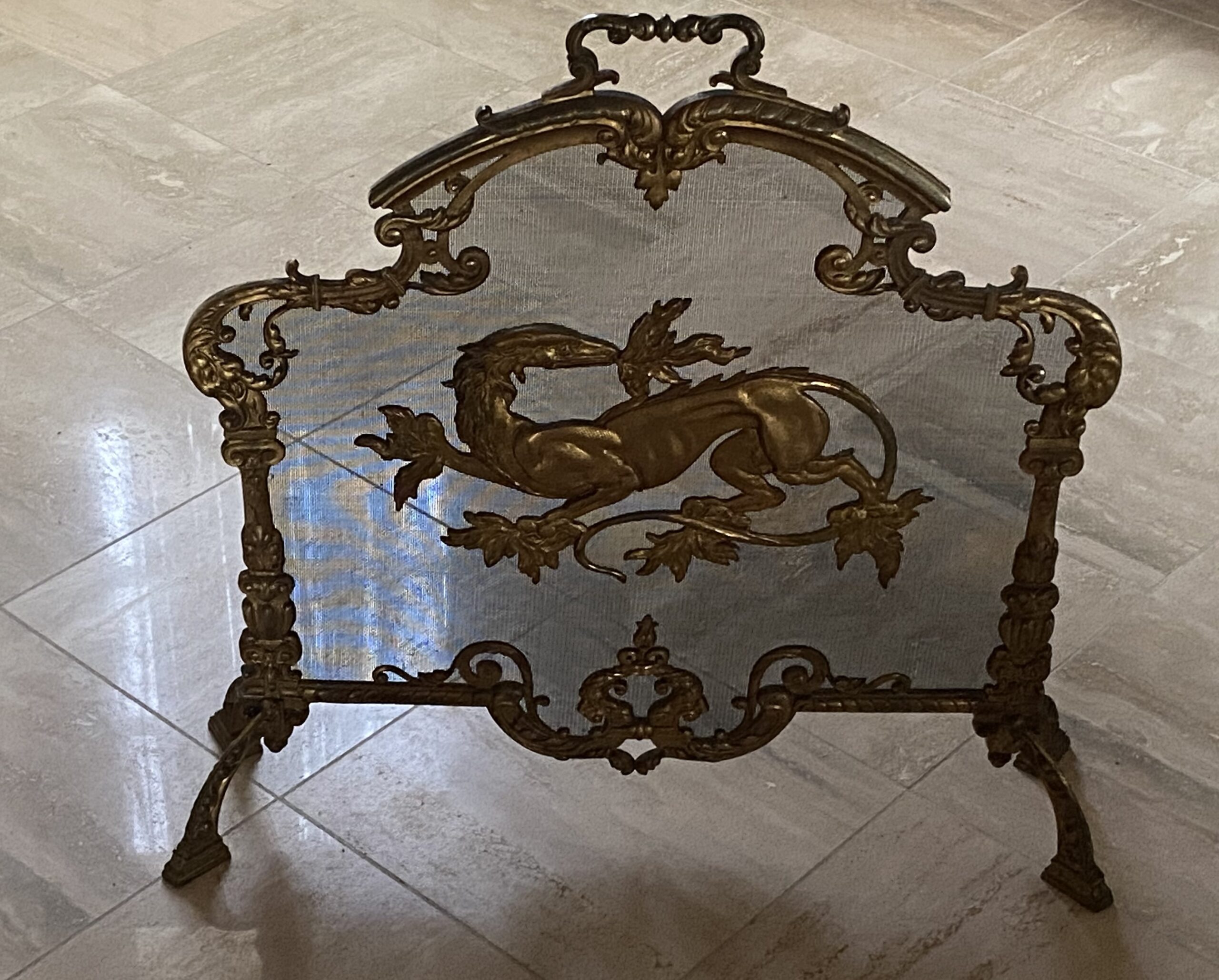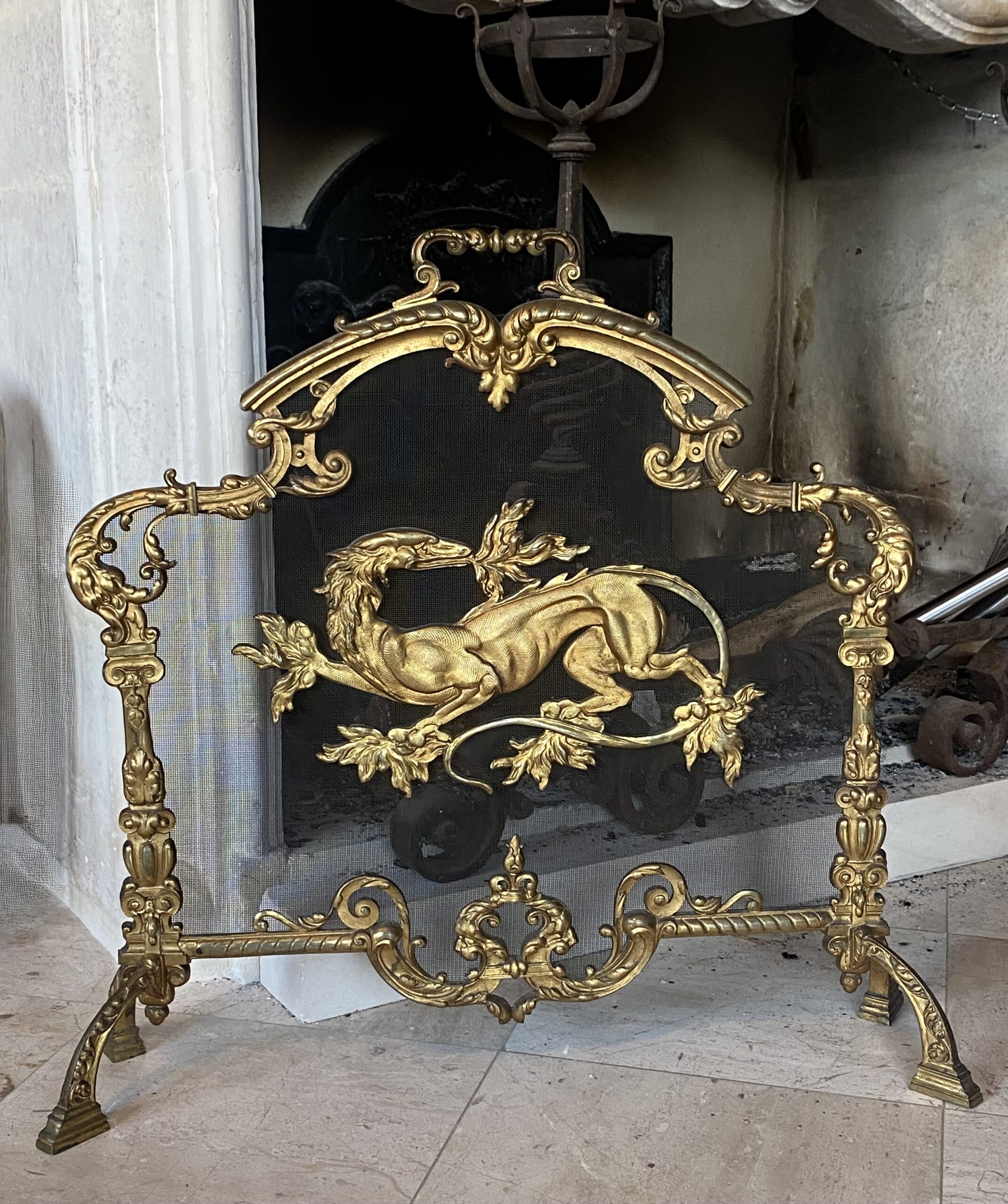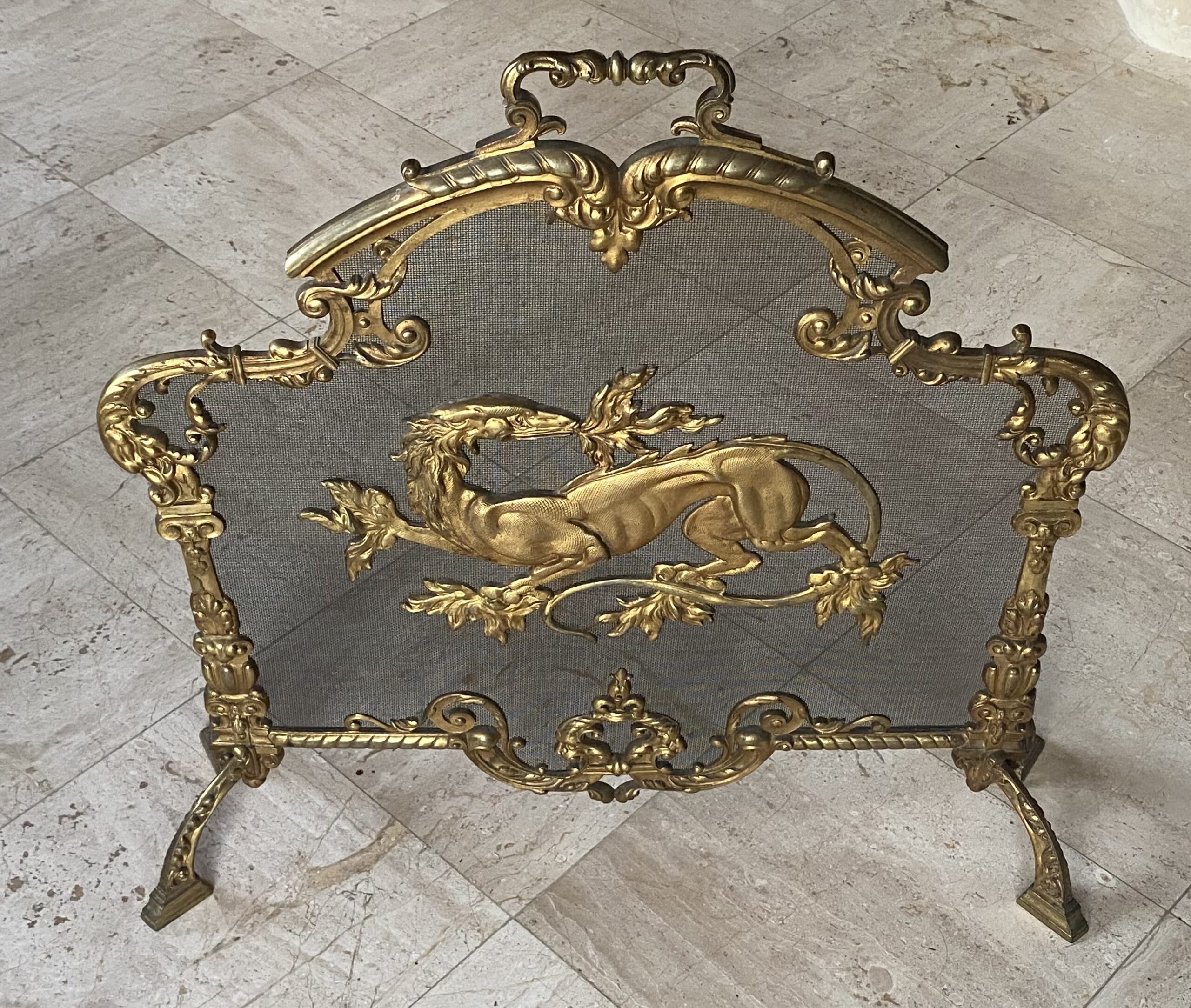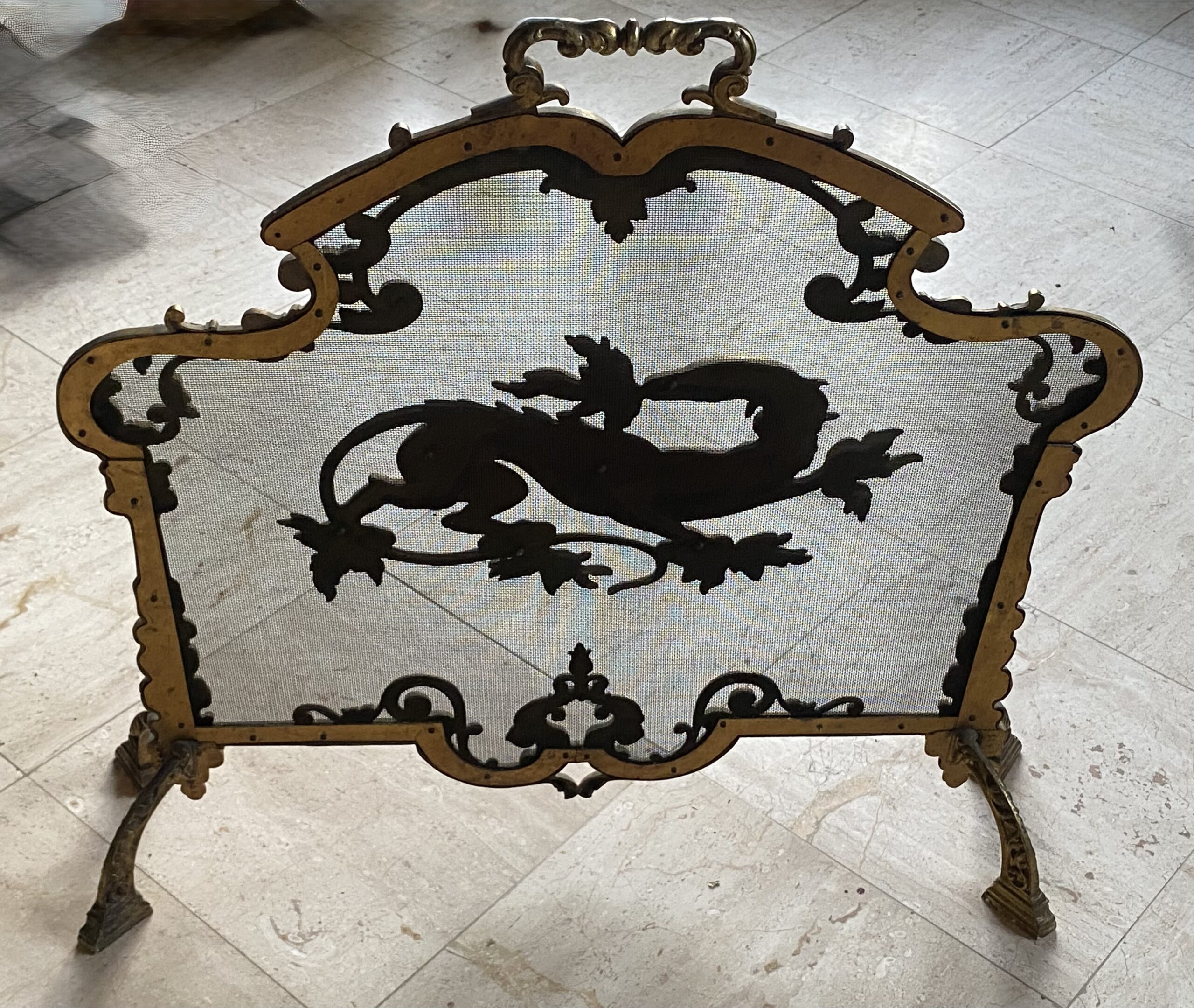 1880′ Pare Etincelles N 3 En Bronze Doré A La Salamandre