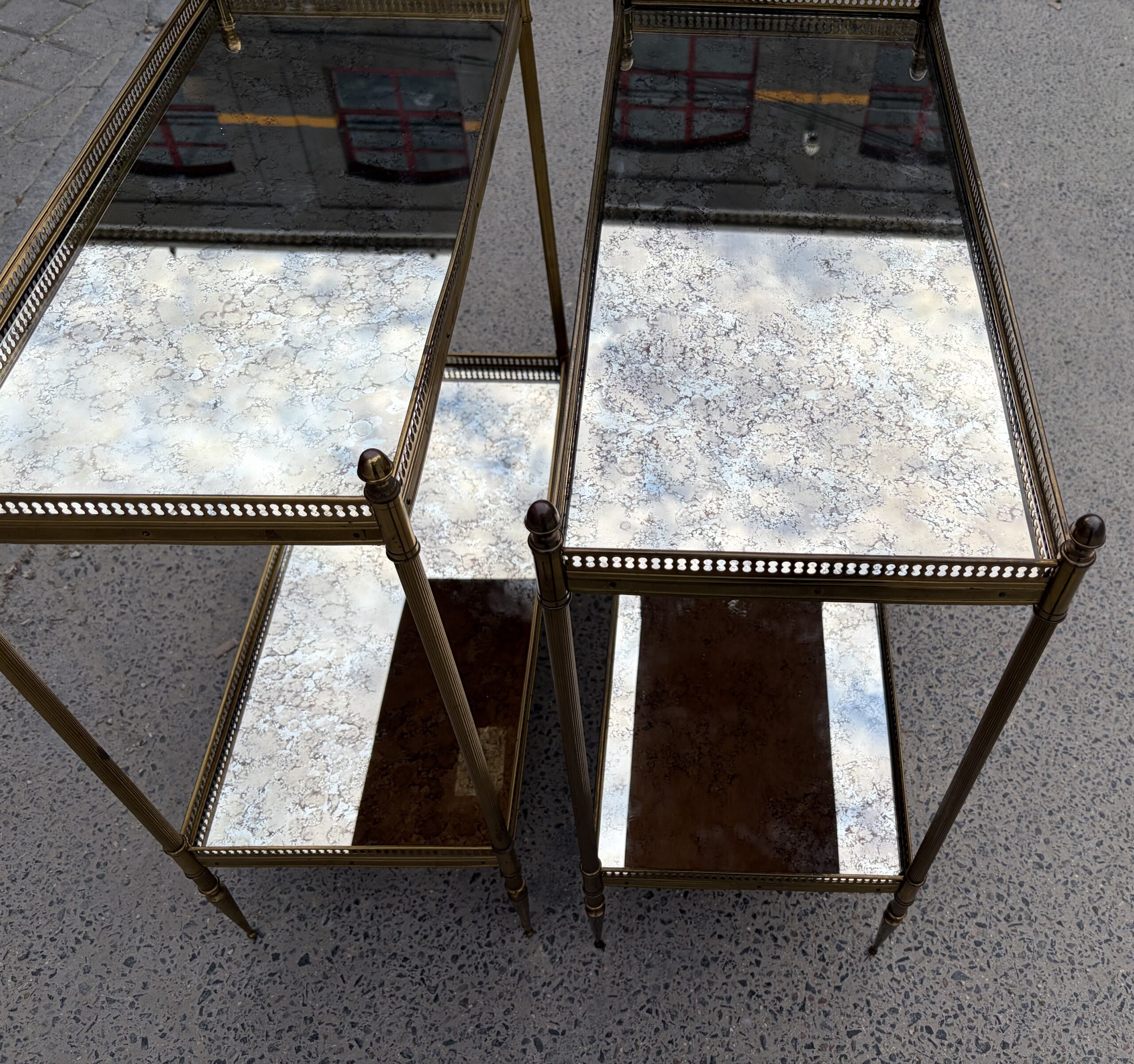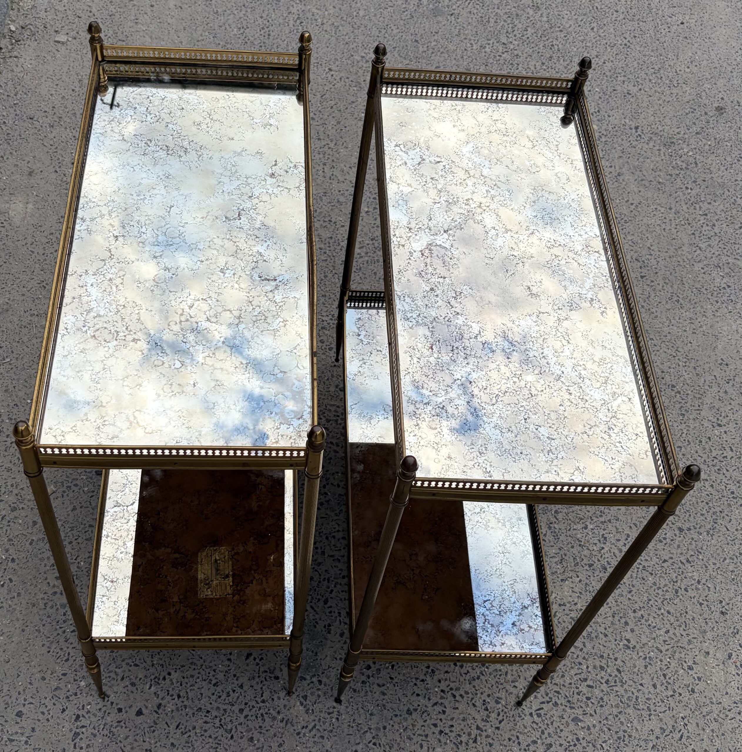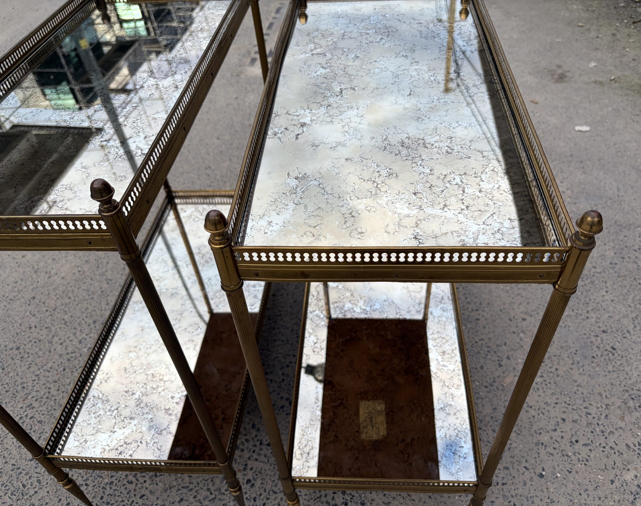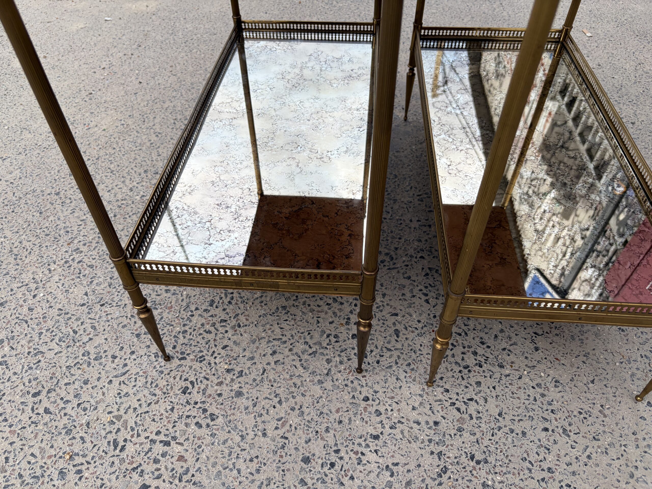 1950/70′ Paire d’Étagères Maison Baguès 64 X 30 cm H 68 cm Plateaux Miroirs Oxydés Vieillis