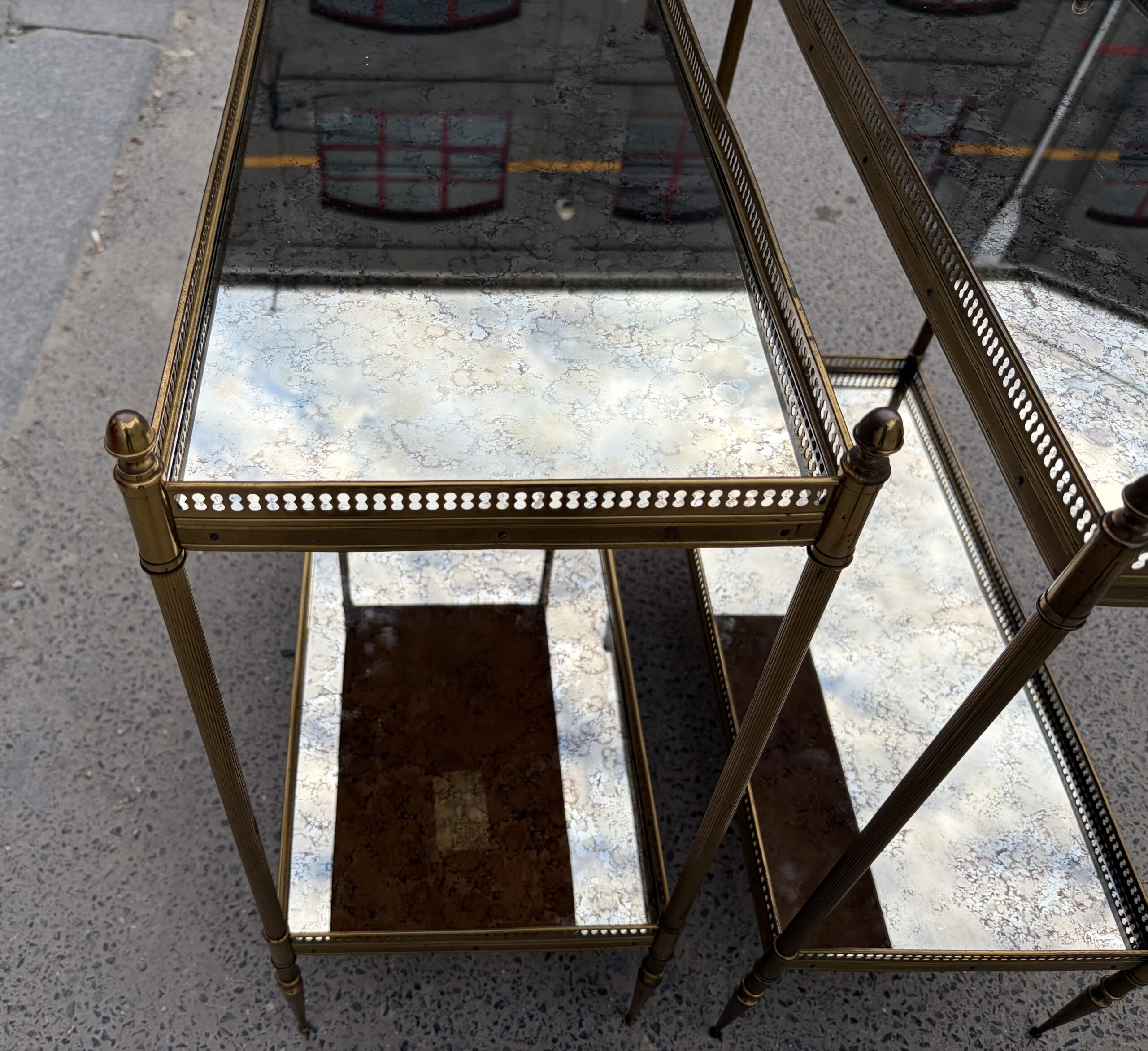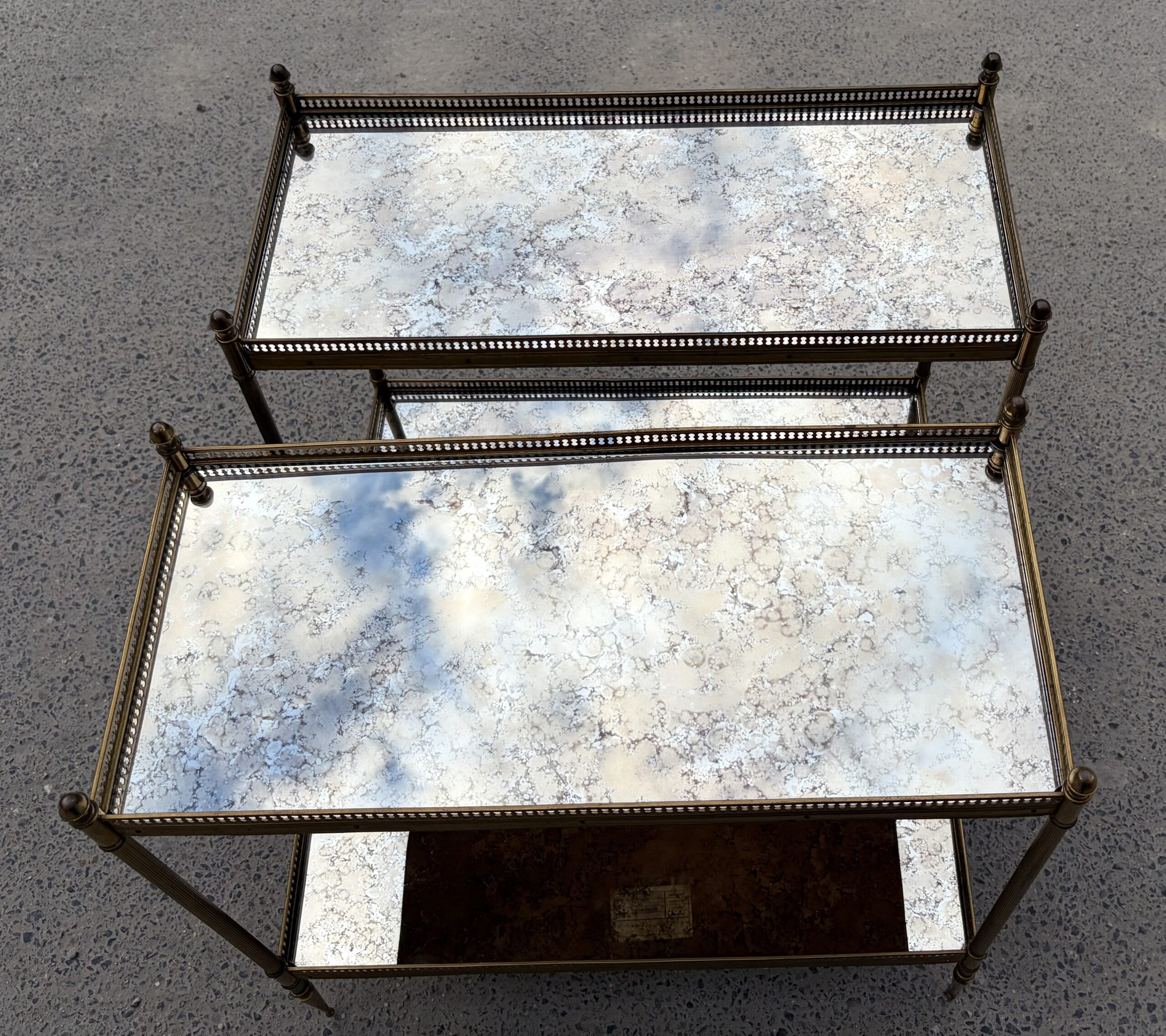 1950/70′ Paire d’Étagères Maison Baguès 64 X 30 cm H 68 cm Plateaux Miroirs Oxydés Vieillis – Image 3
