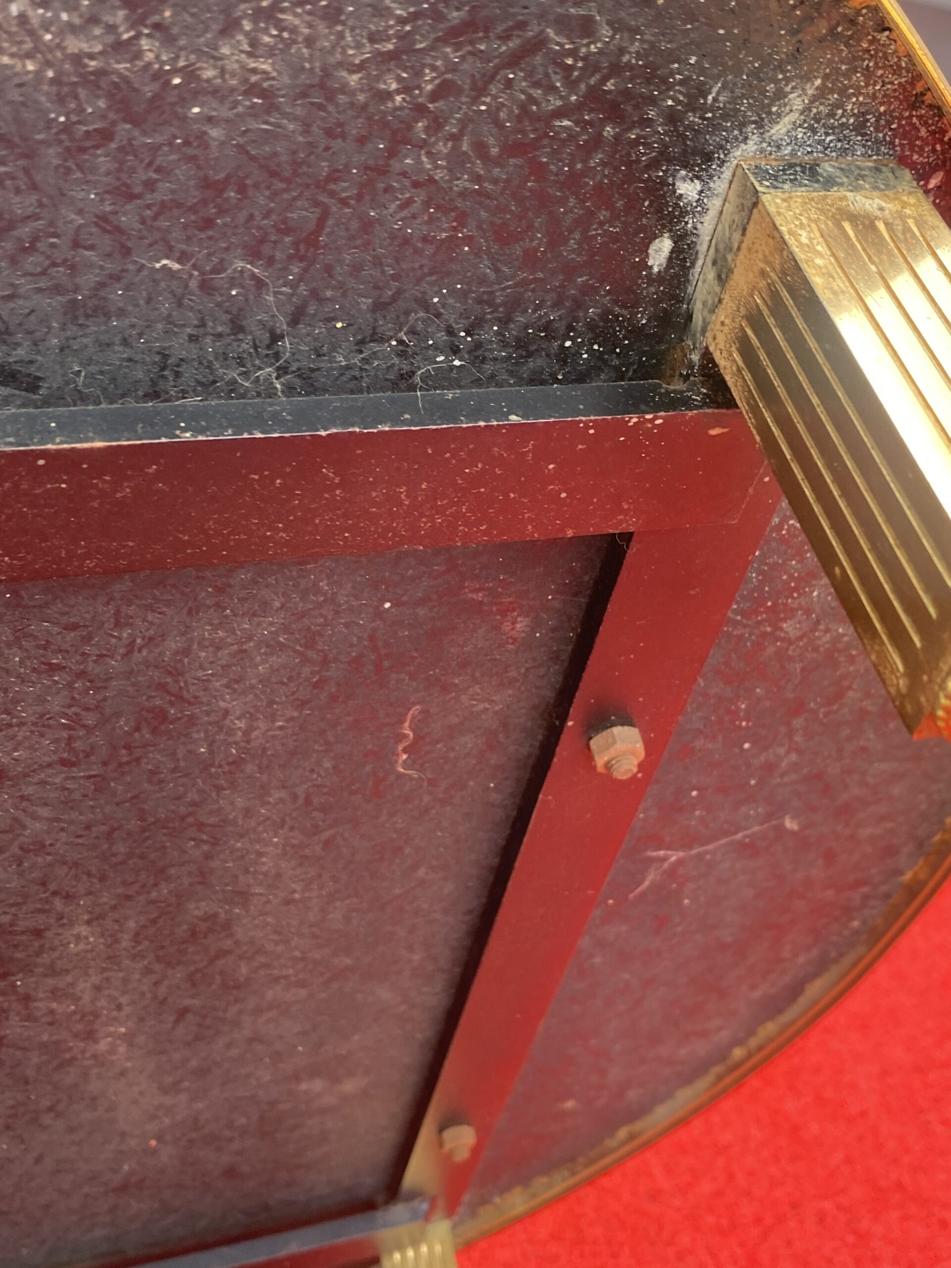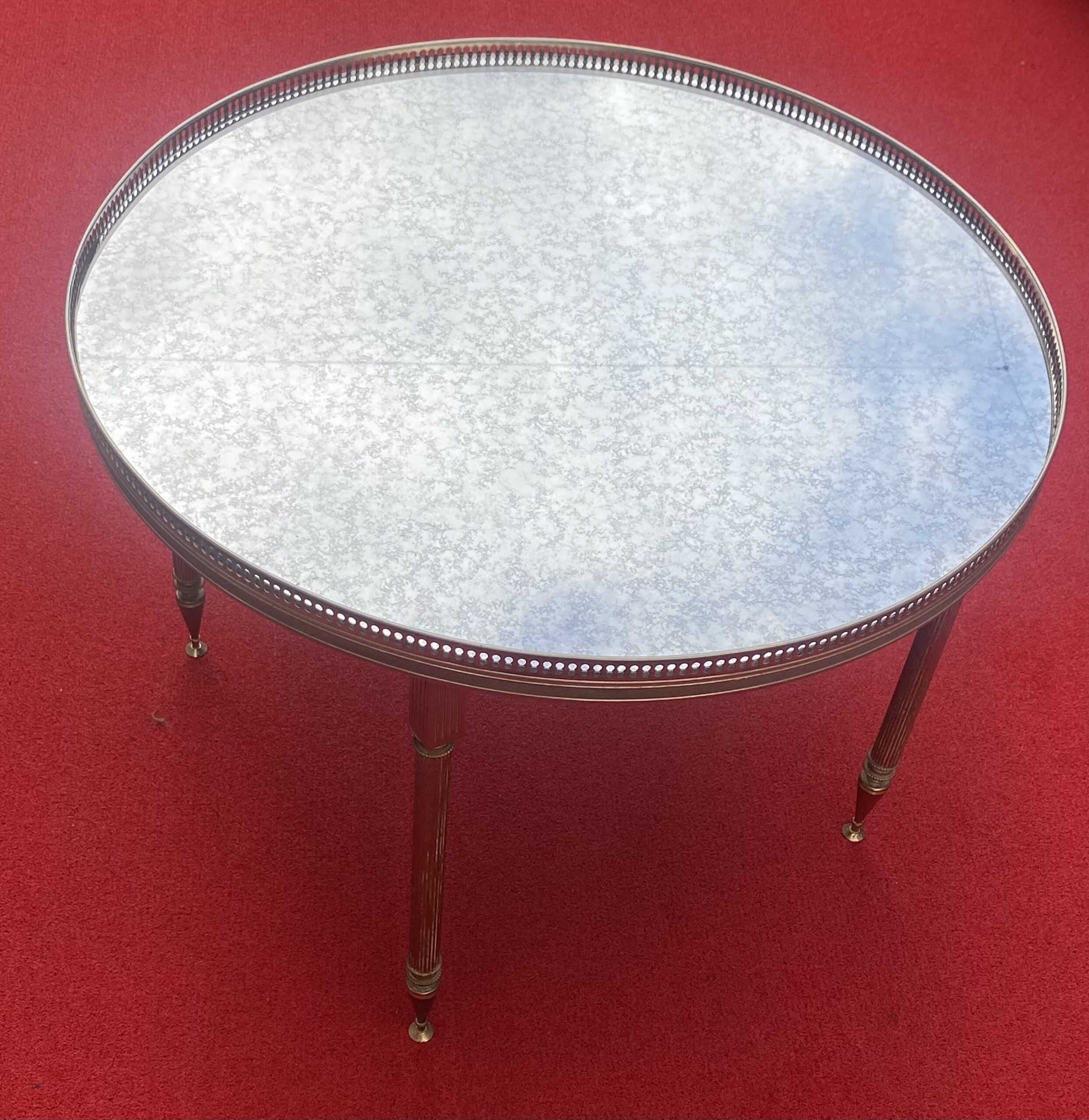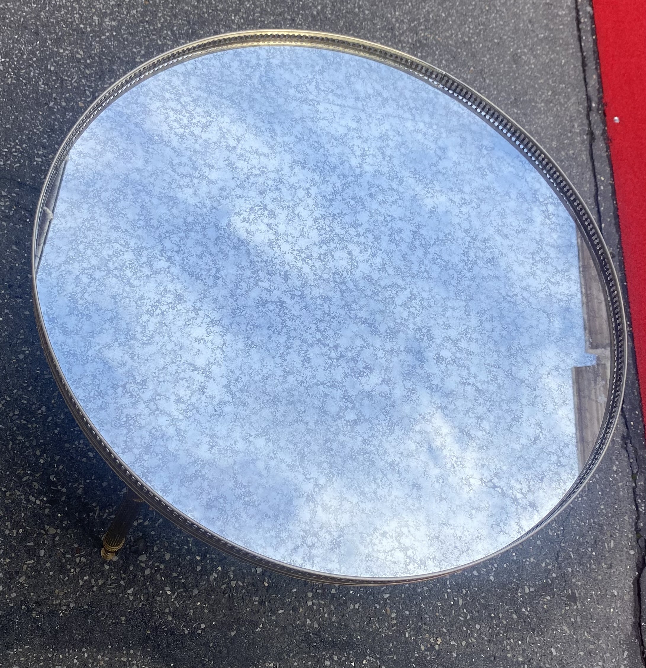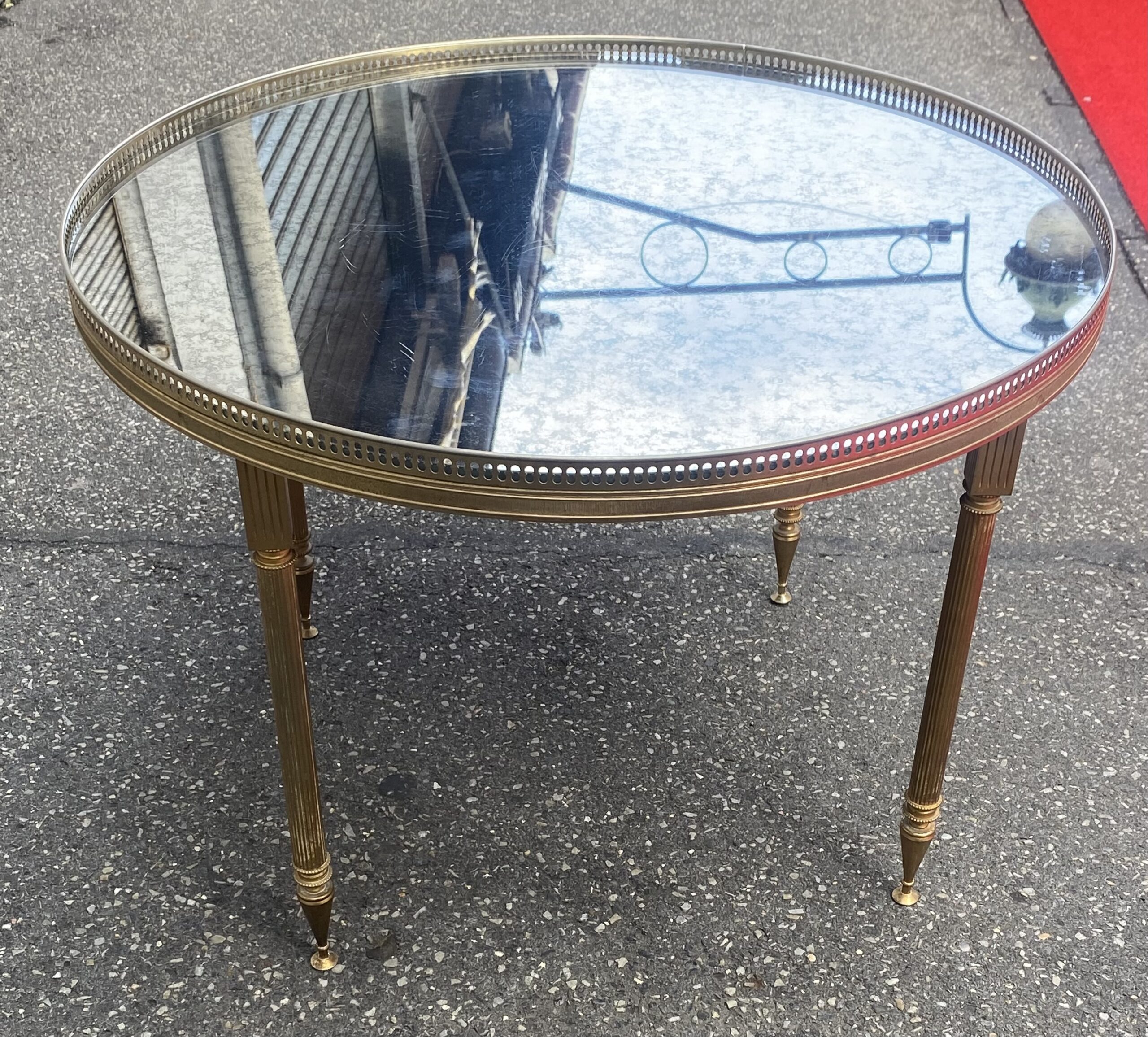 Table basse en bronze ou laiton avec galerie, plateau miroirs vieillis . Bon état. Circa 1970