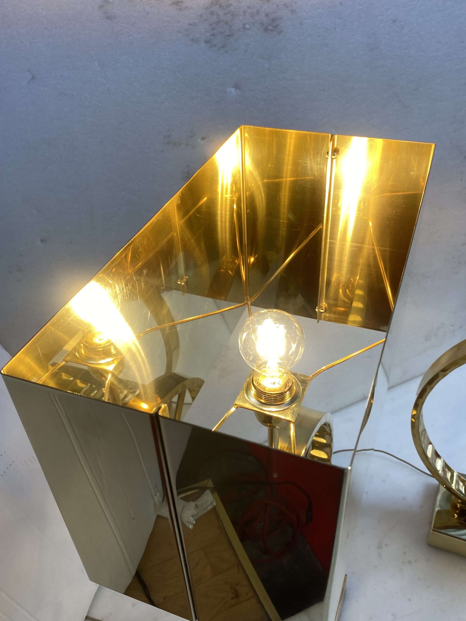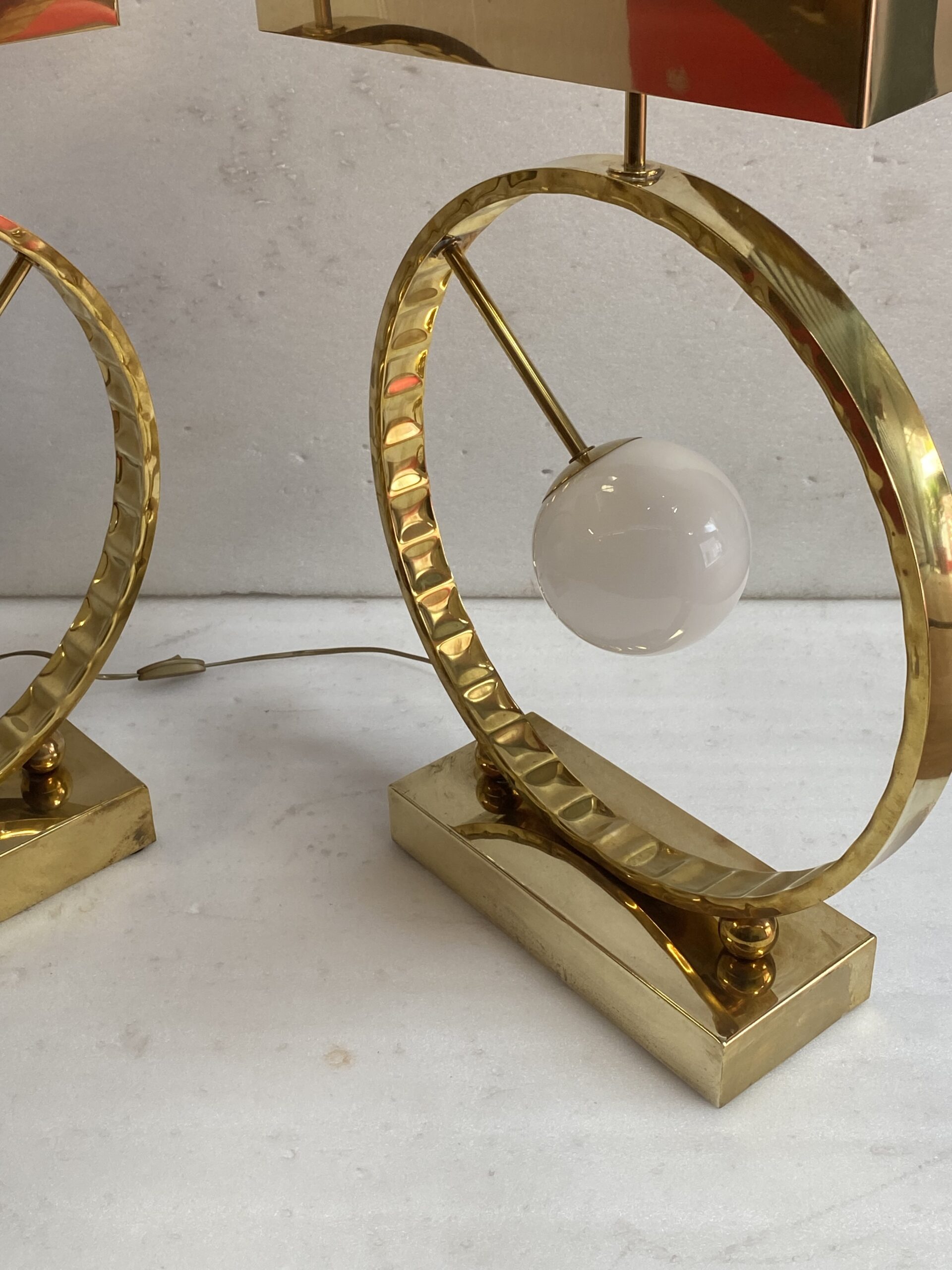 1980′ Paire De Lampes Design En Laiton Et Opaline H 88 cm Ø 48 cm